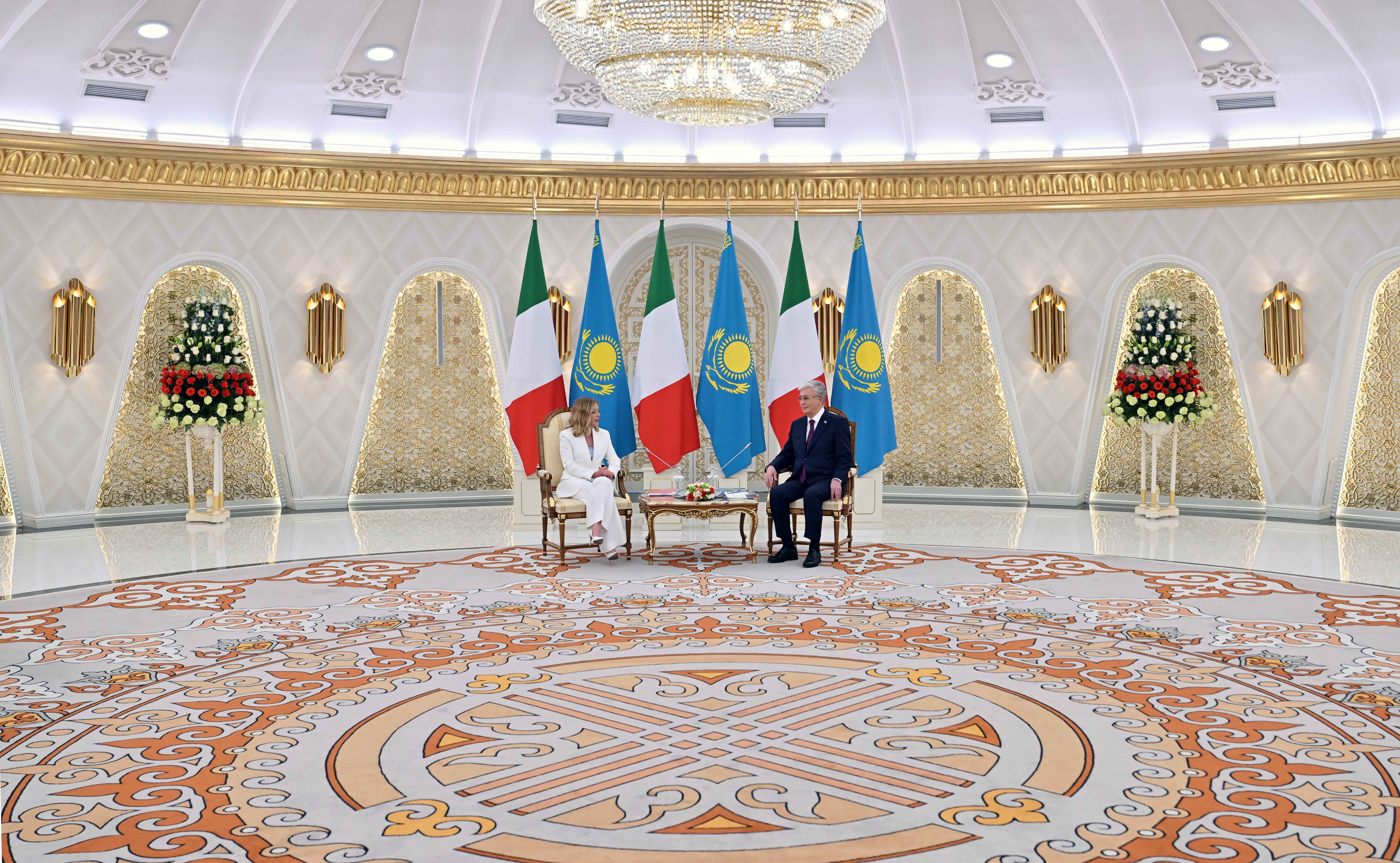 Затем Касым-Жомарт Токаев и Джорджа Мелони провели переговоры в формате тет-а-тет. Глава нашего государства поблагодарил Председателя Совета министров Италии за то, что она приняла приглашение посетить с официальным визитом Казахстан.