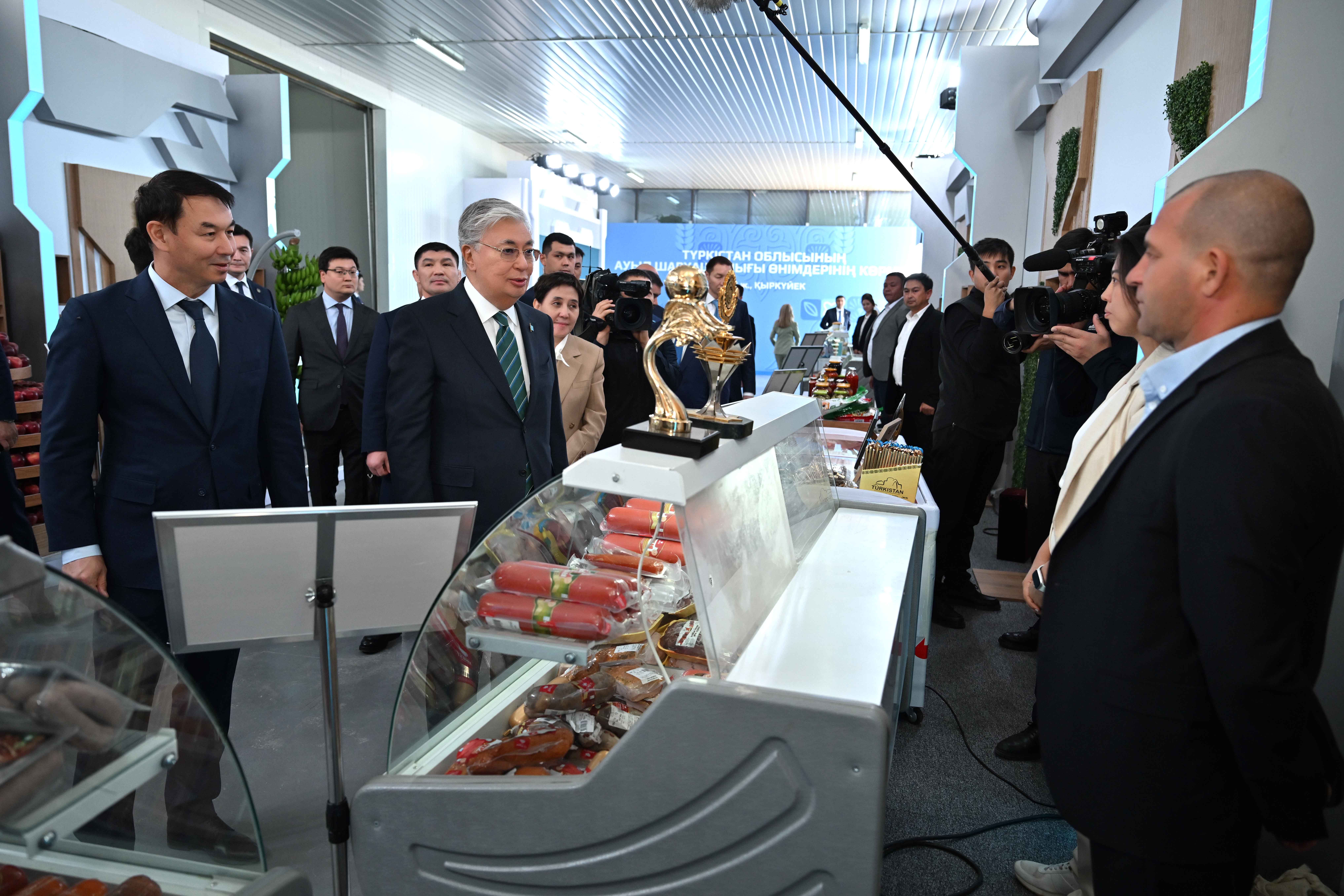 Президент посетил выставку местных производителей сельскохозяйственной продукции, организованную в промышленном парке SPK TURKISTAN.