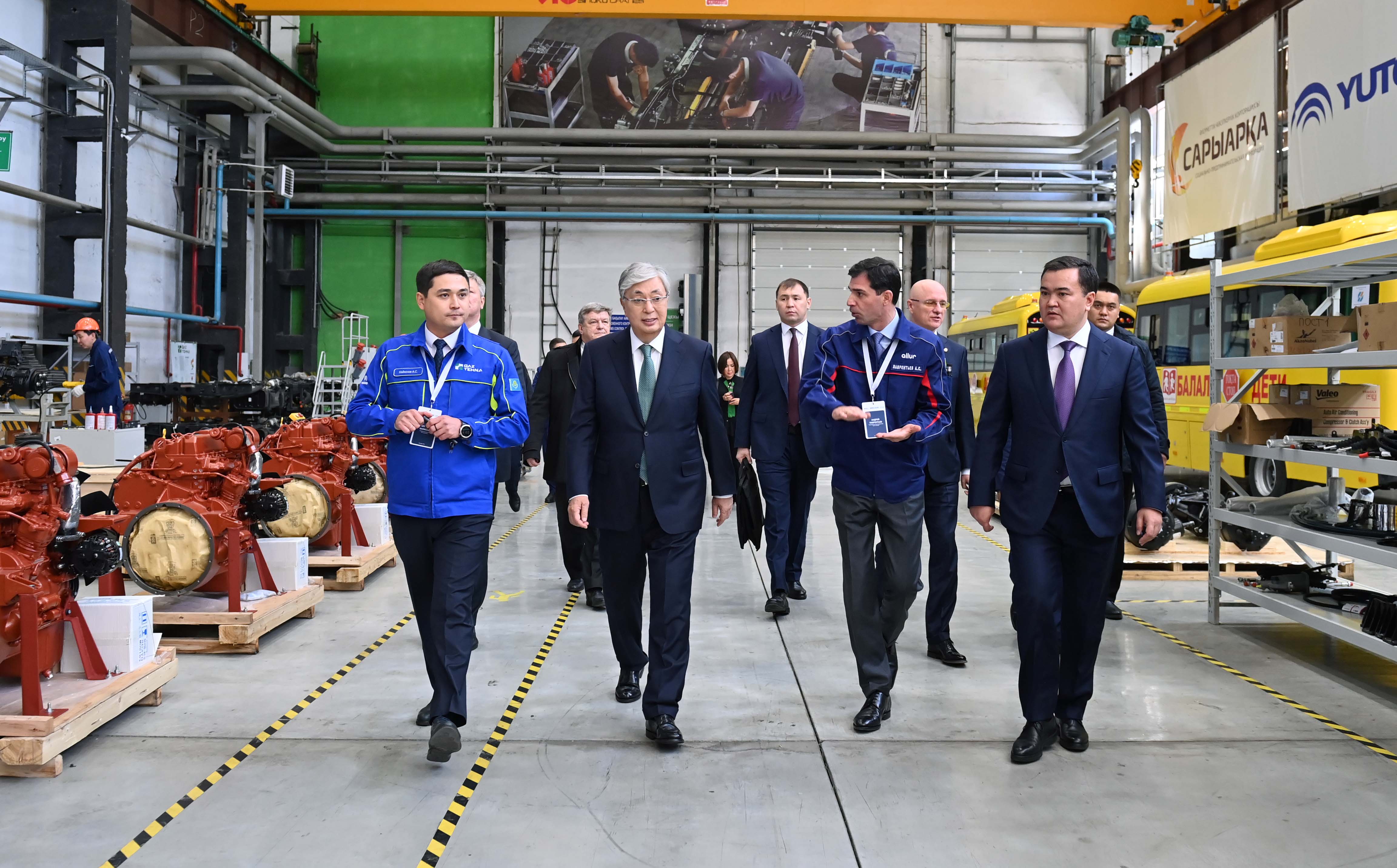 В рамках рабочего визита в Карагандинскую область Глава государства ознакомился с работой предприятия QazTehna по производству автобусов и специальной техники.