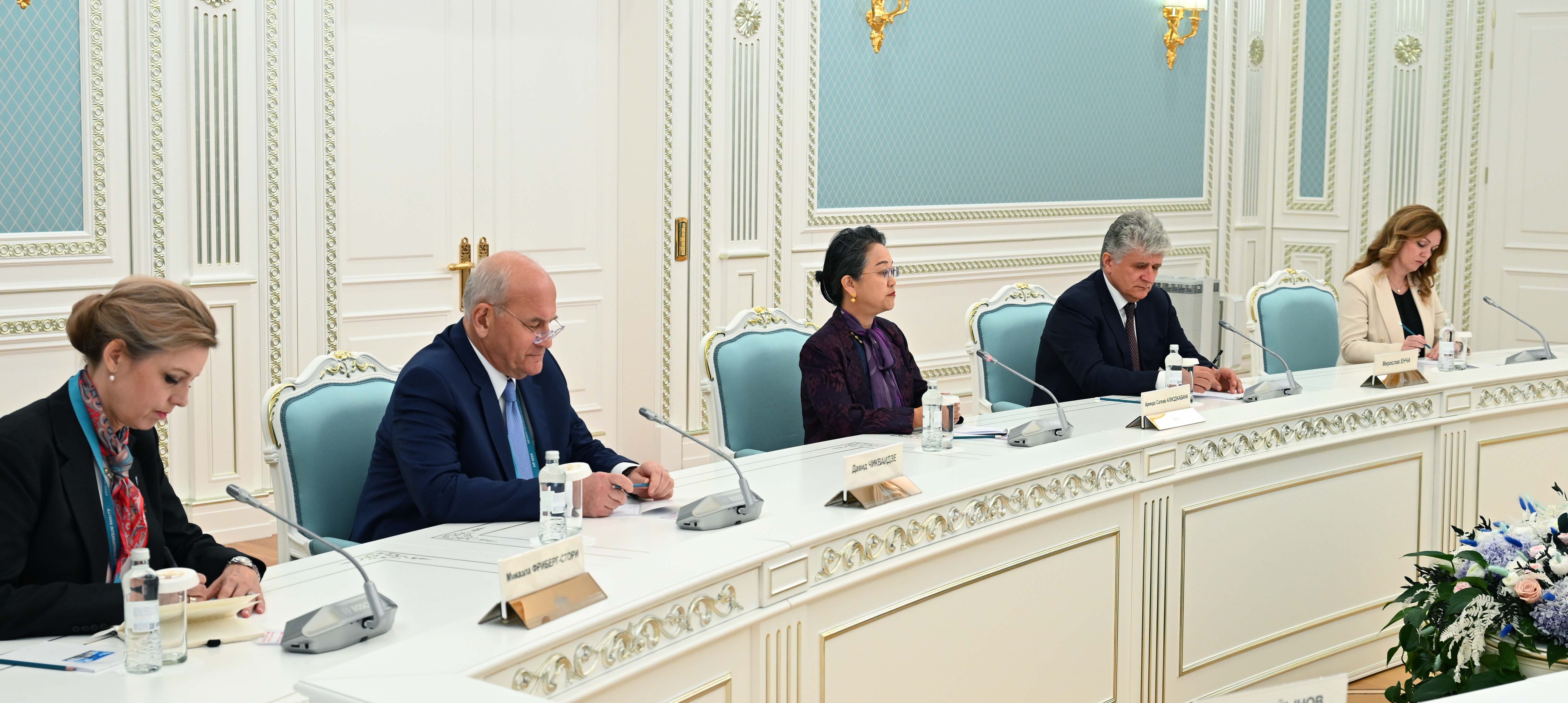 Глава государства провел встречу с делегацией ООН в составе Заместителя Генерального секретаря ООН – Исполнительного секретаря Экономической и социальной комиссии ООН для Азии и Тихого океана Армиды Алисджабаны, помощника Генерального секретаря по политическим вопросам Мирослава Енчи и помощника Генерального секретаря ООН – помощника Администратора Программы развития ООН Иваны Живкович.
