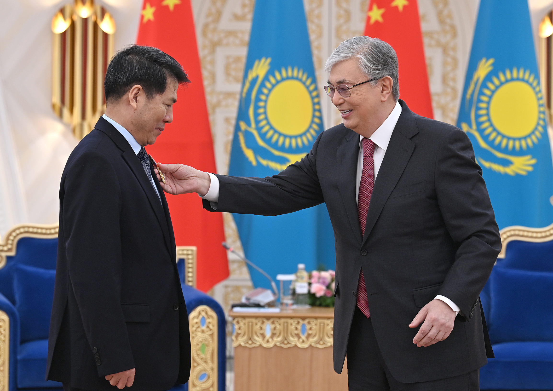 В завершение встречи Глава государства наградил Ли Хуэя орденом «Достык» II степени за вклад в укрепление взаимовыгодного казахско-китайского сотрудничества, а также в ознаменование 30-летней годовщины установления дипломатических отношений между Казахстаном и Китаем.