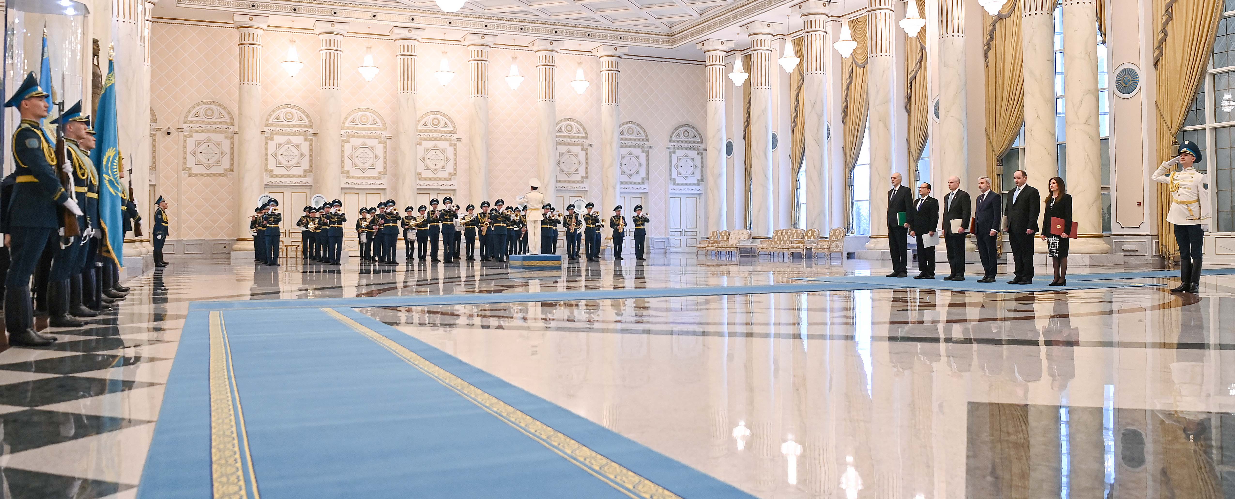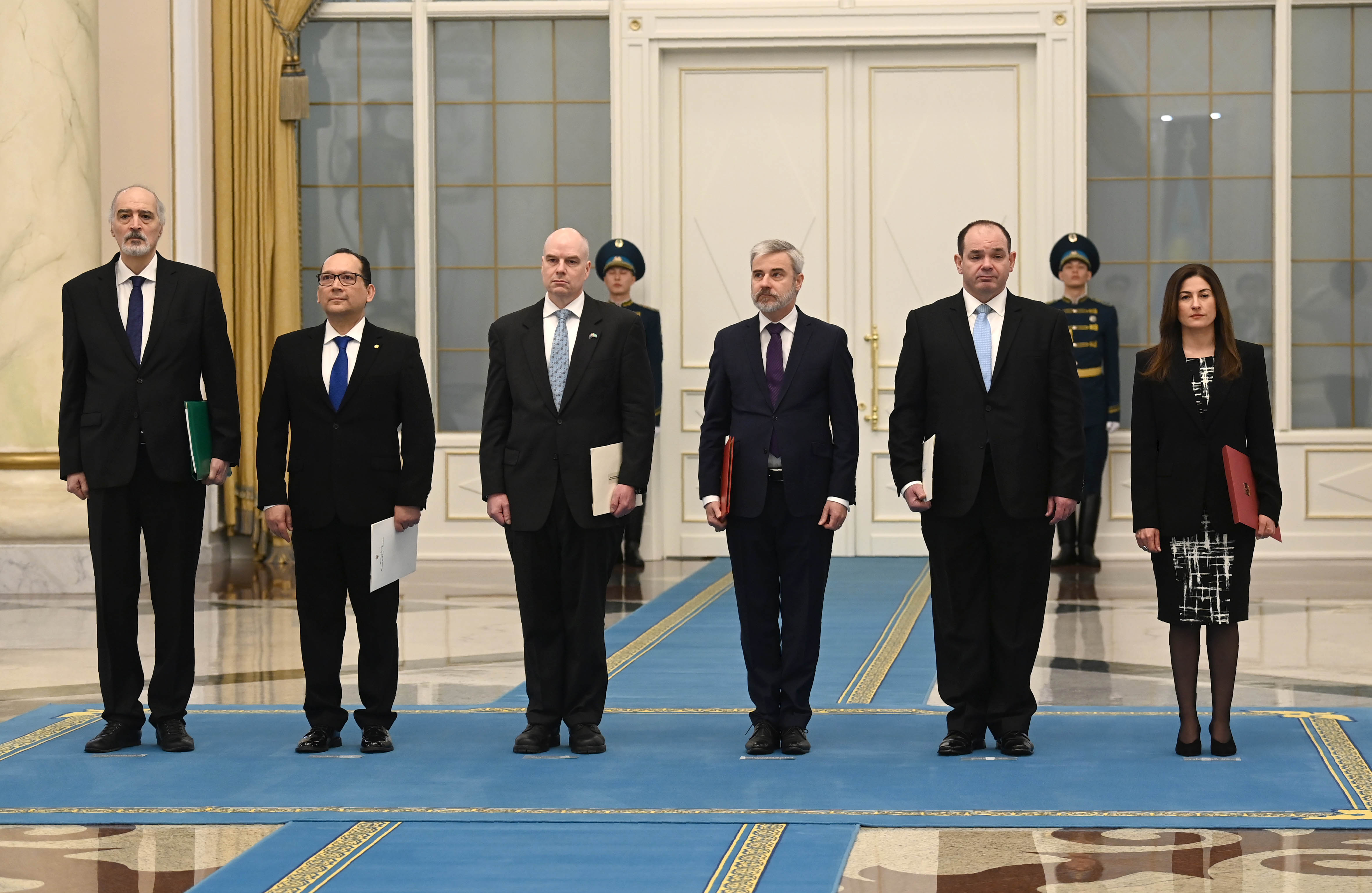 Верительные грамоты вручили посол Арабской Республики Египет Ибтиссам Ракха Ахмед Хасан, посол Республики Сербия Владимир Йовичич, посол Великого Герцогства Люксембург Томас Райзен, посол Австралии Джон Уильям Гиринг, посол Республики Колумбия Эктор Исидро Аренас Нейра, посол Сирийской Арабской Республики Башар Джафари.
