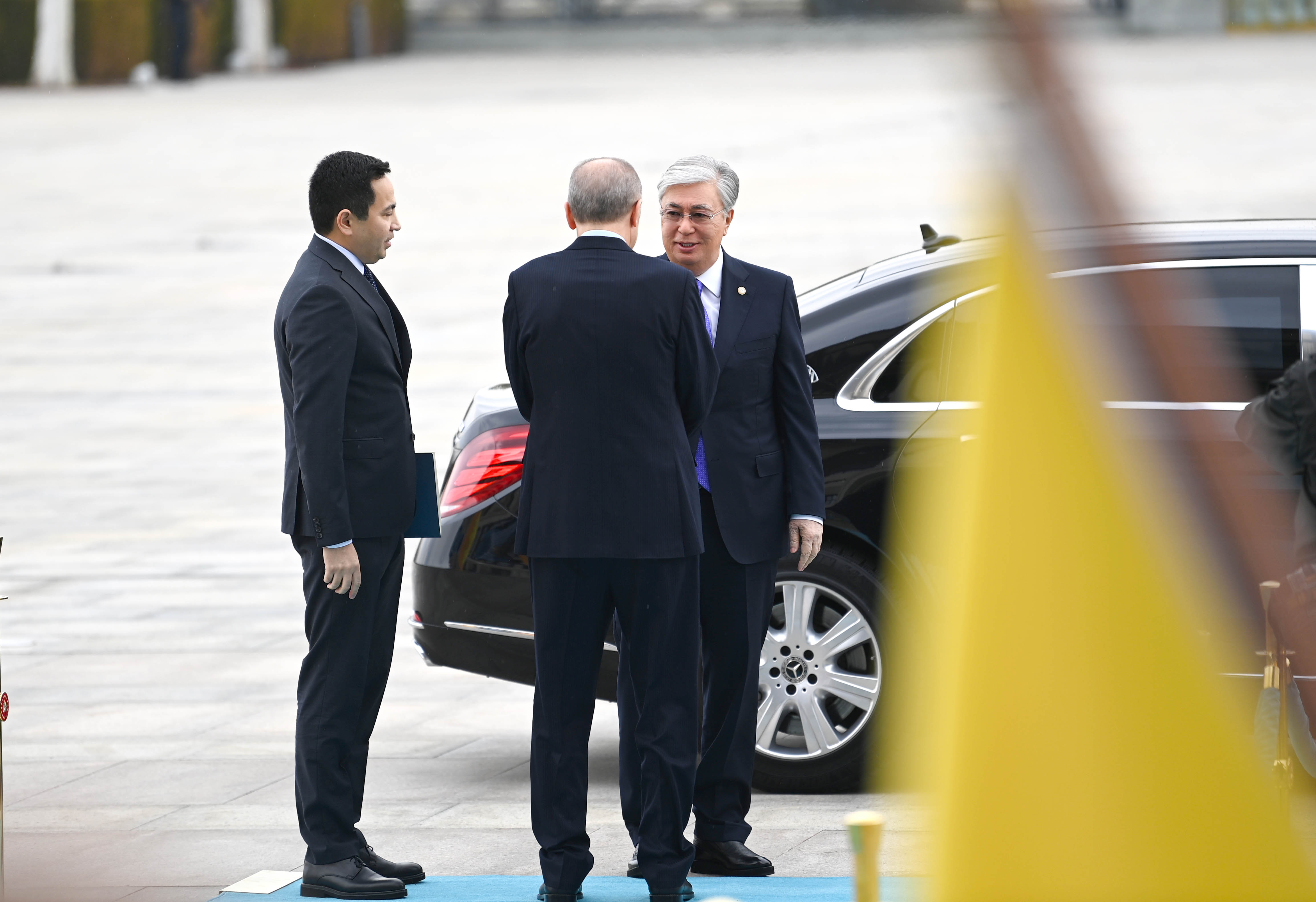 Приветствуя турецкого лидера, Президент Казахстана поблагодарил его за оказанное гостеприимство и организацию внеочередного саммита Организации тюркских государств.