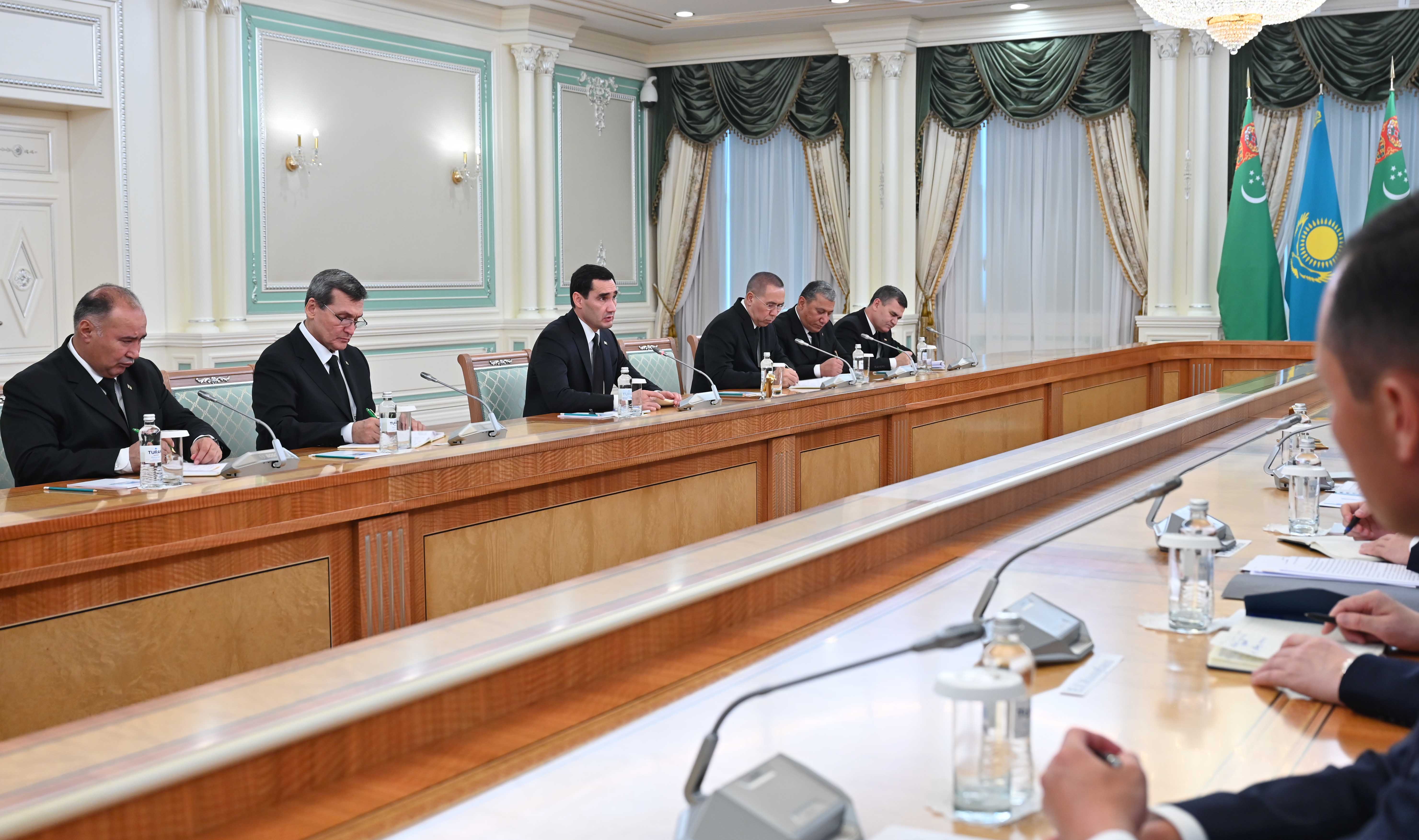 В ходе встречи главы государств обсудили перспективы развития казахско-туркменского сотрудничества в торгово-экономической, энергетической, нефтегазовой и транспортно-логистической сферах. Отдельное внимание было уделено вопросам расширения культурно-гуманитарных связей.
