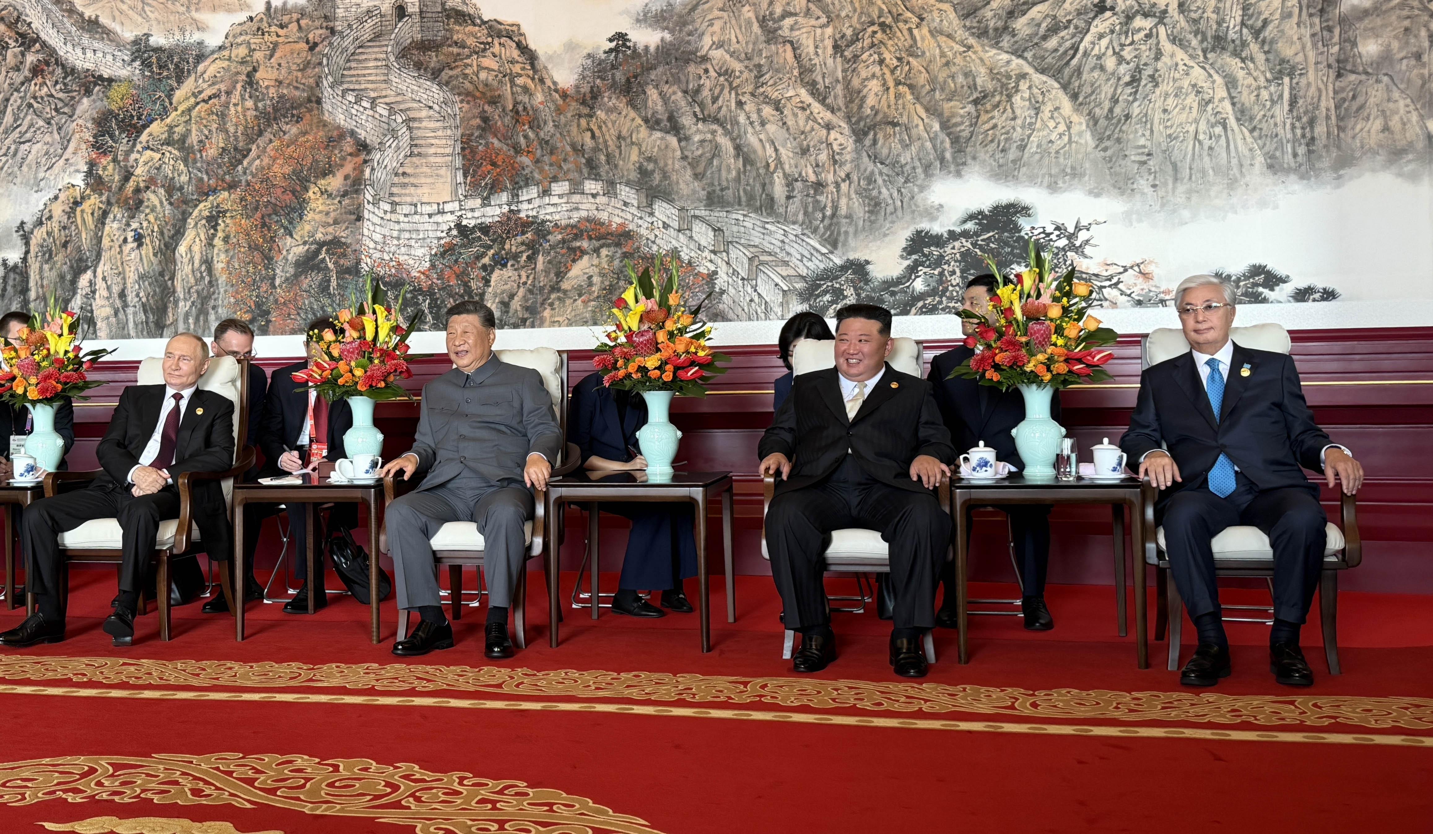 Наряду с Касым-Жомартом Токаевым и Председателем КНР Си Цзиньпином на трибунах присутствовали более 20 глав государств и правительств из Европы, Азии, Африки и Латинской Америки.