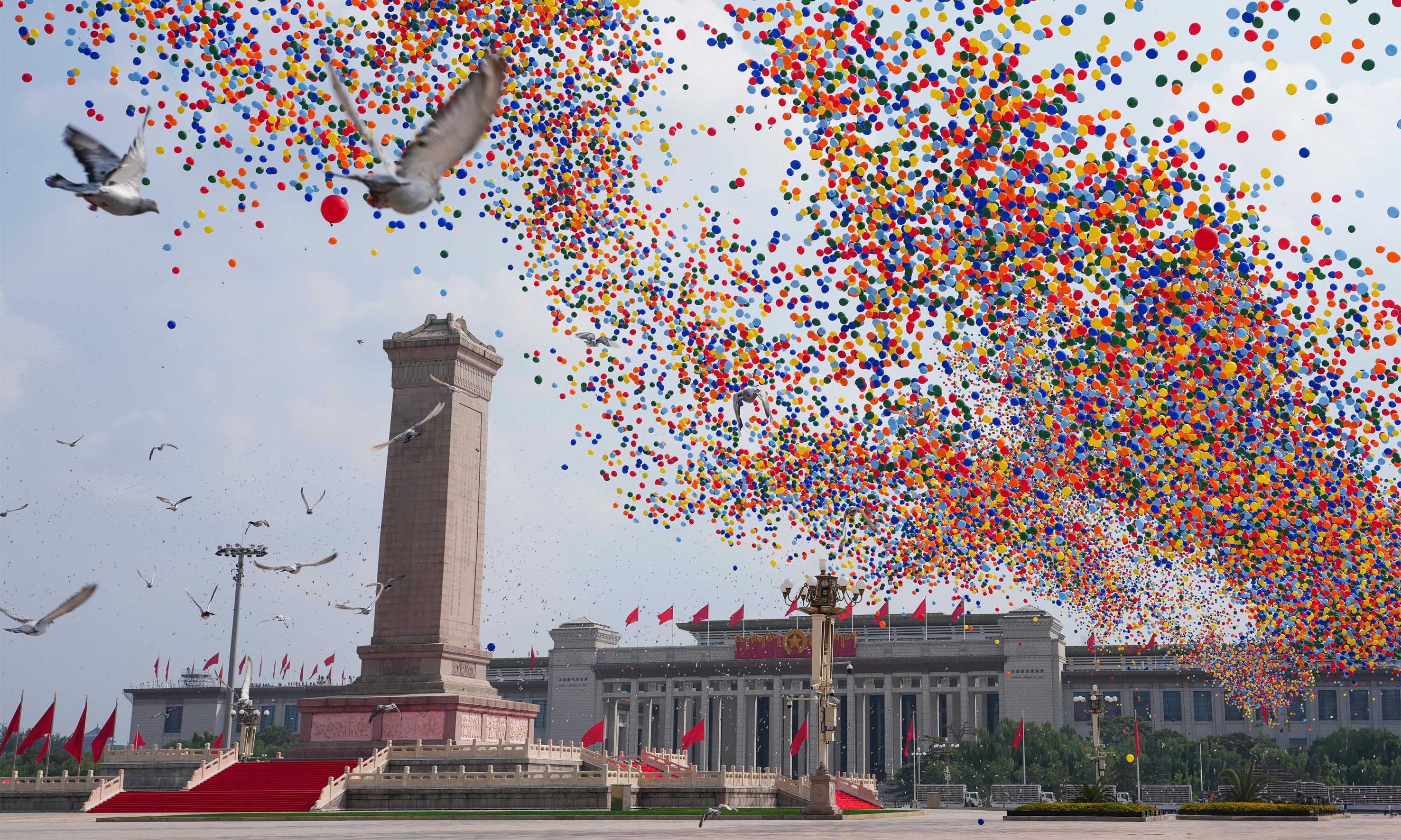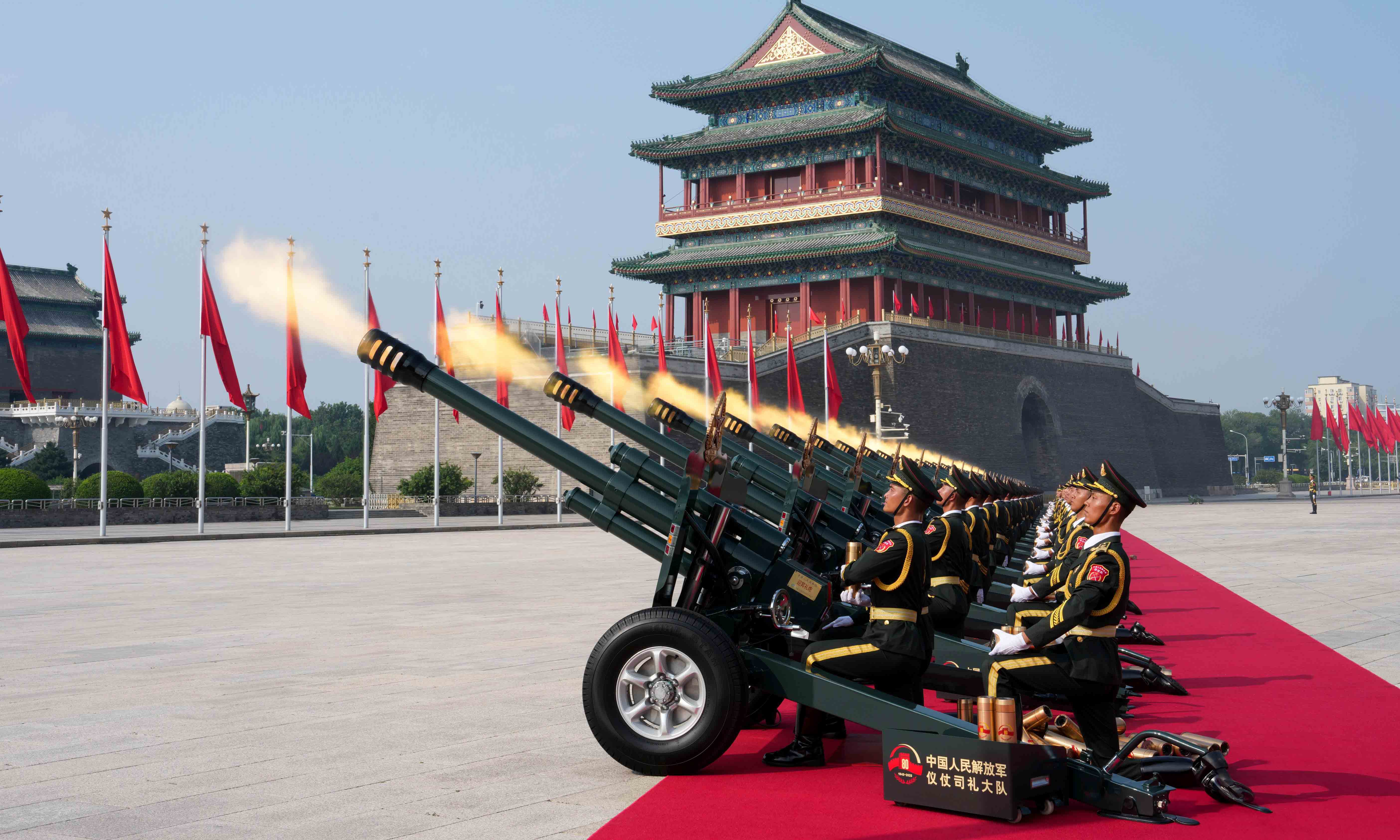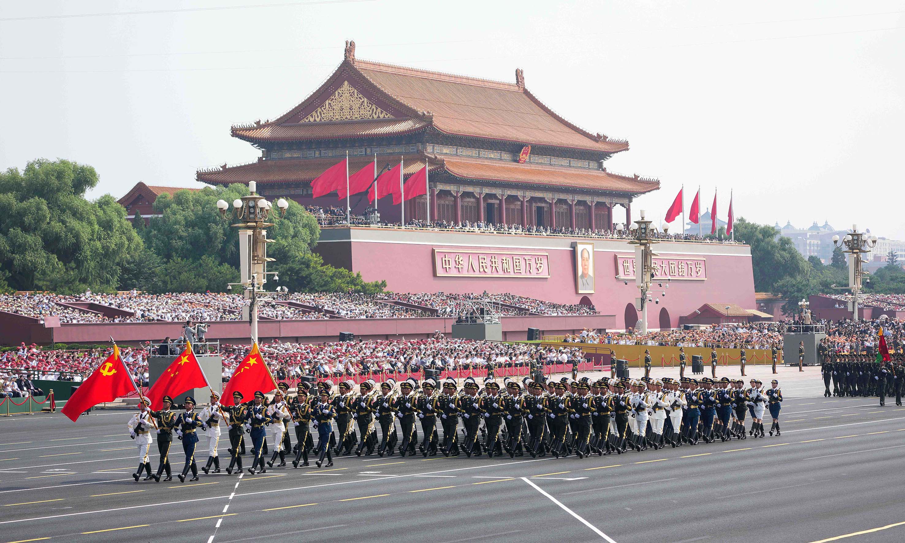 В параде приняли участие 45 расчетов Народно-освободительной армии Китая общей численностью более 10 тыс. военнослужащих. Было задействовано свыше 100 летательных аппаратов и несколько сотен единиц наземной техники.