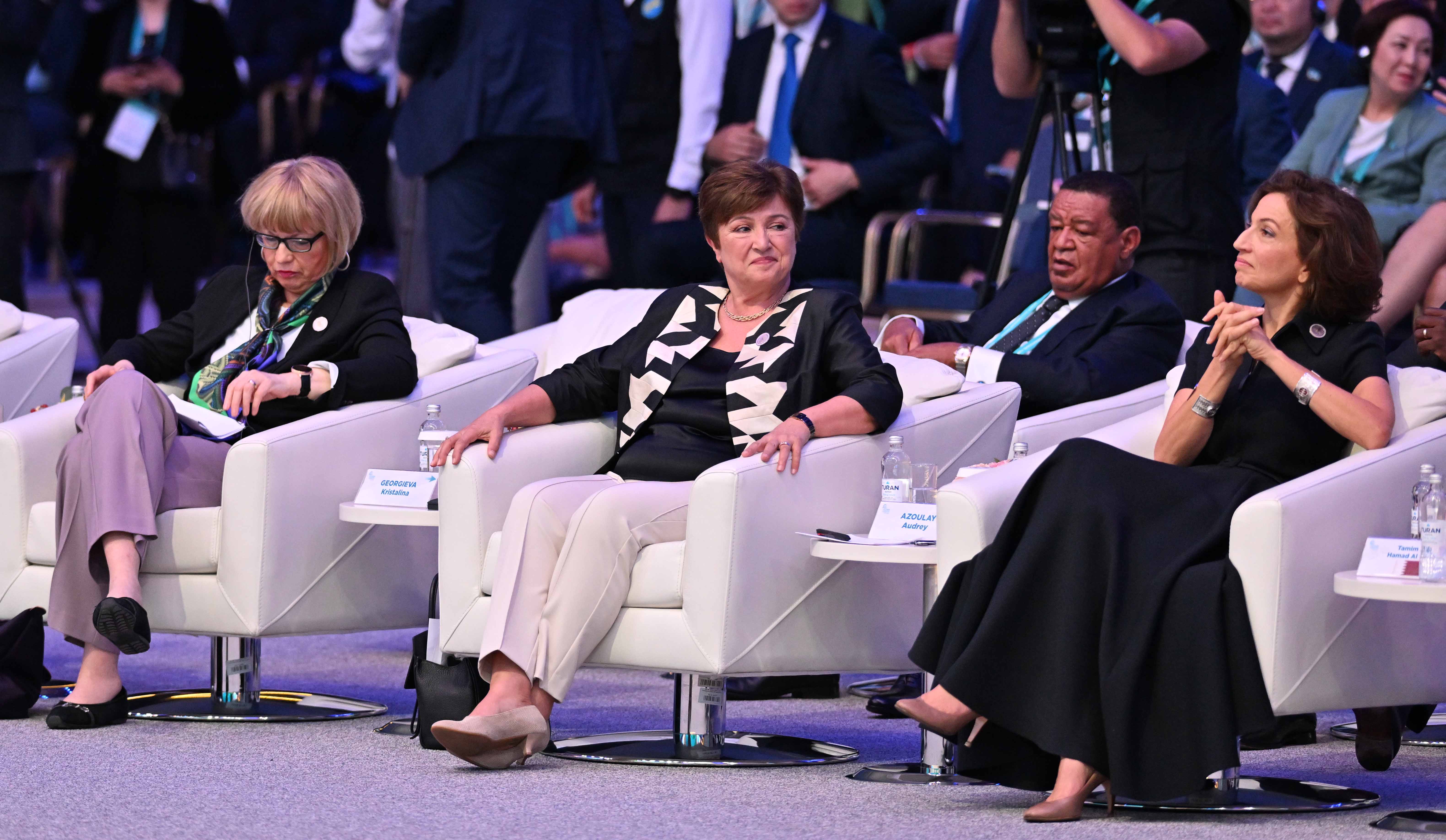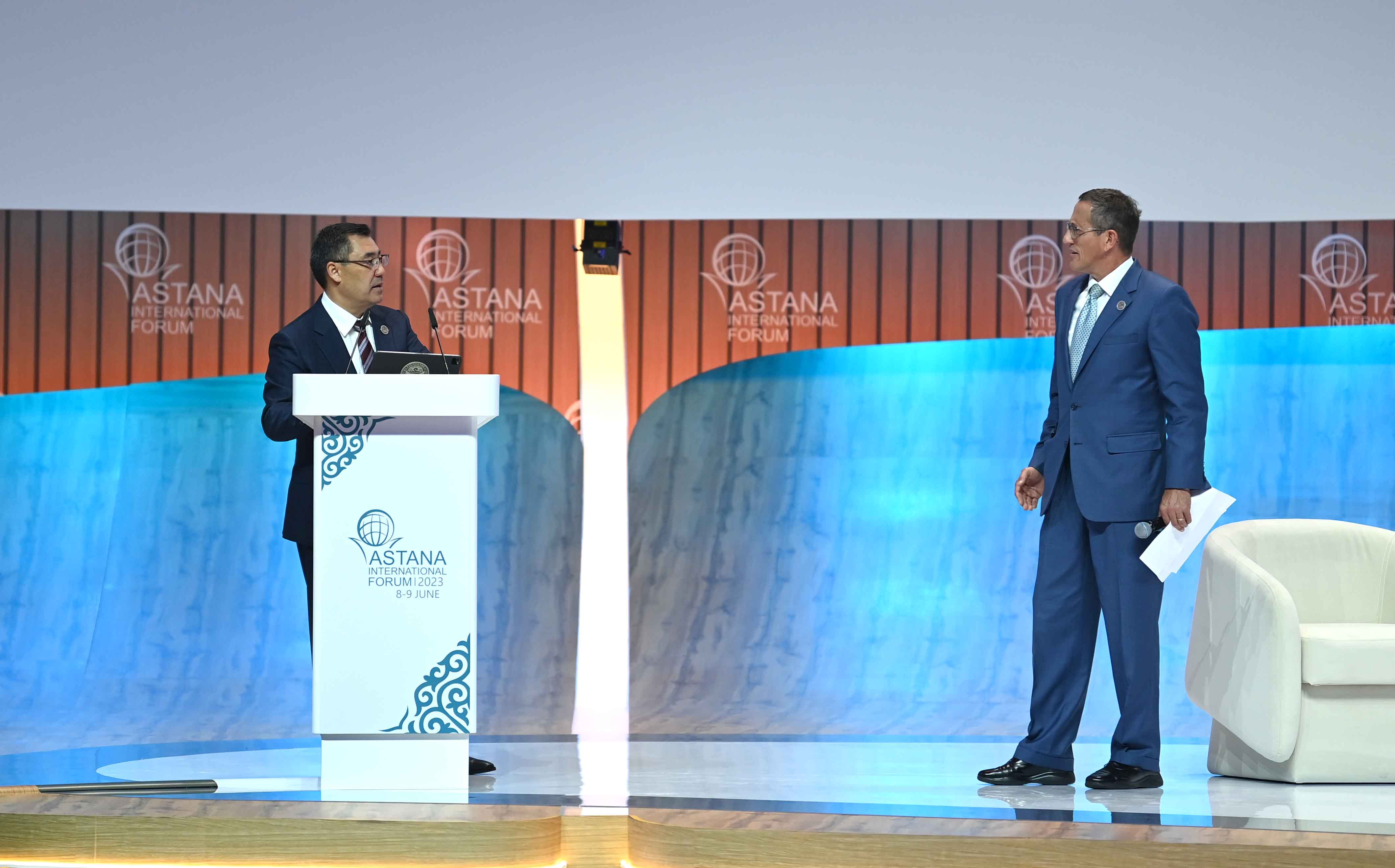 В качестве спикеров наряду с лидером Казахстана Касым-Жомартом Токаевым выступили Президент Кыргызстана Садыр Жапаров, Председатель Президиума Боснии и Герцеговины Желька Цвиянович, Премьер-министр Узбекистана Абдулла Арипов, Генеральный директор ЮНЕСКО Одрэ Азуле, Директор-распорядитель МВФ Кристалина Георгиева, Генеральный секретарь ОБСЕ Хельга Шмид и заместитель Генерального секретаря ООН – исполнительный секретарь ЭСКАТО Армида Салсиа Алисджабана. С видеообращением к участникам форума обратился Генеральный секретарь ООН Антониу Гутерриш. Модератором пленарного заседания выступил известный журналист CNN Ричард Квест.