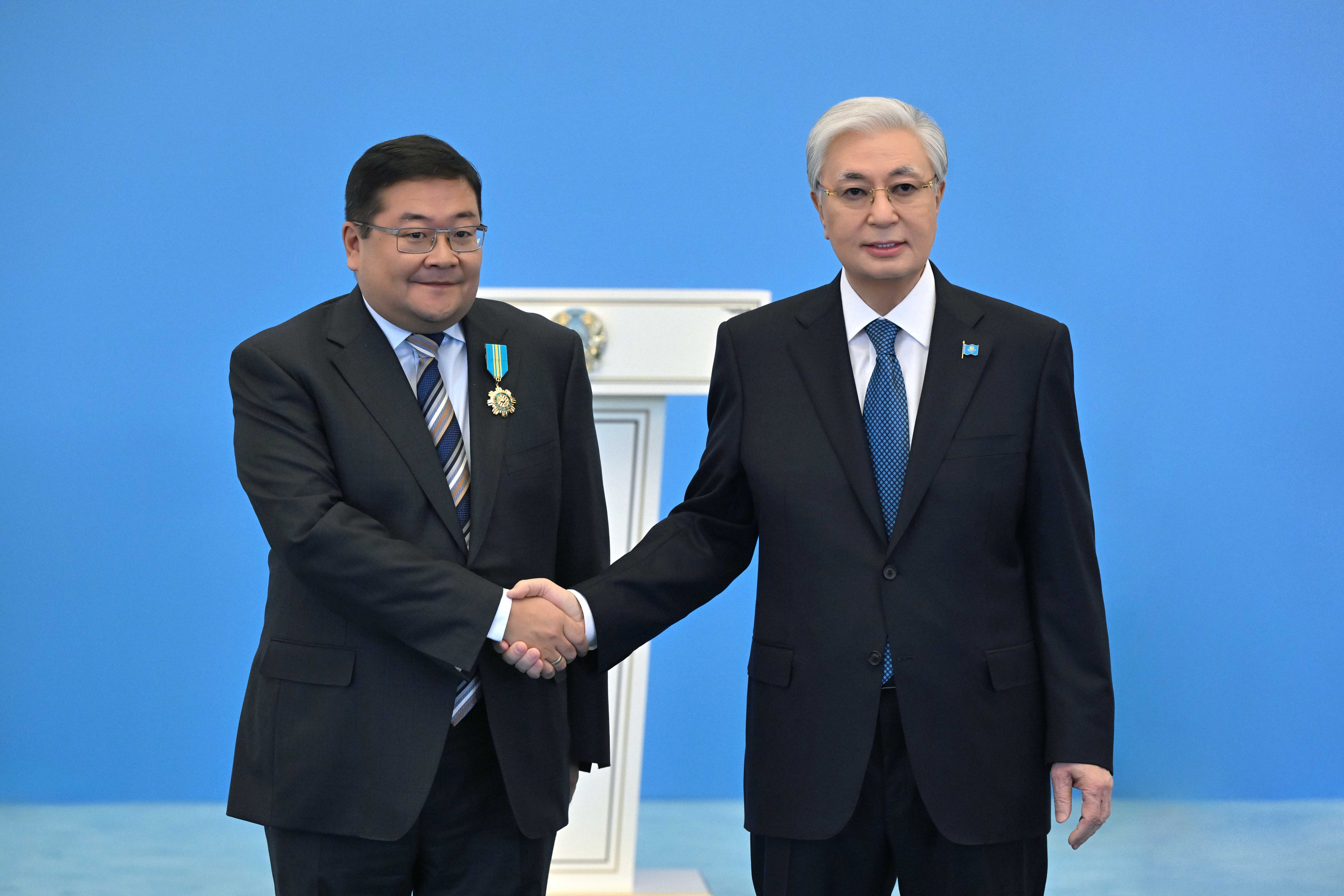 Затем Касым-Жомарт Токаев вручил государственные награды ряду граждан за значительный вклад в социально-экономическое развитие страны, укрепление законности и порядка.