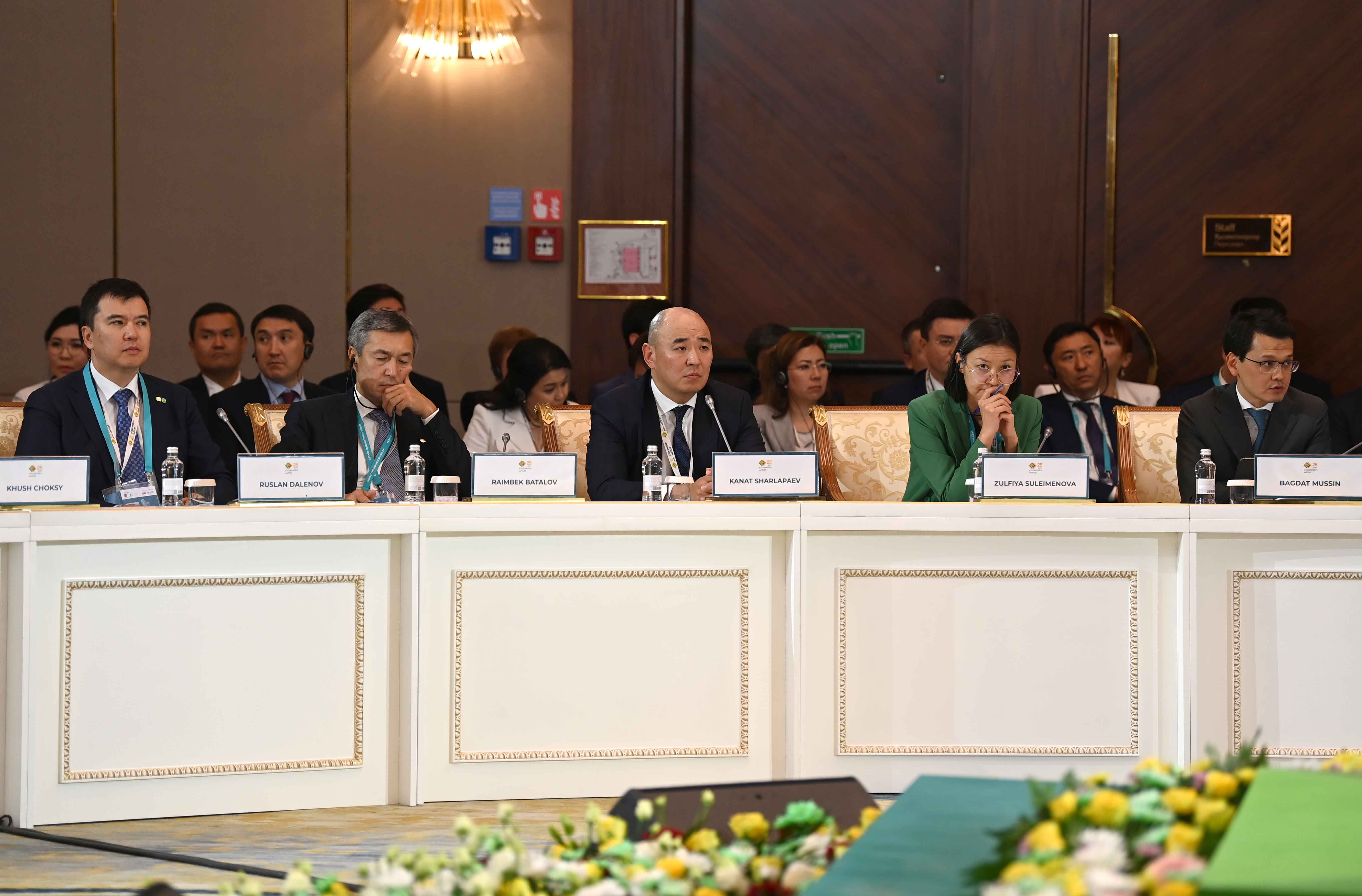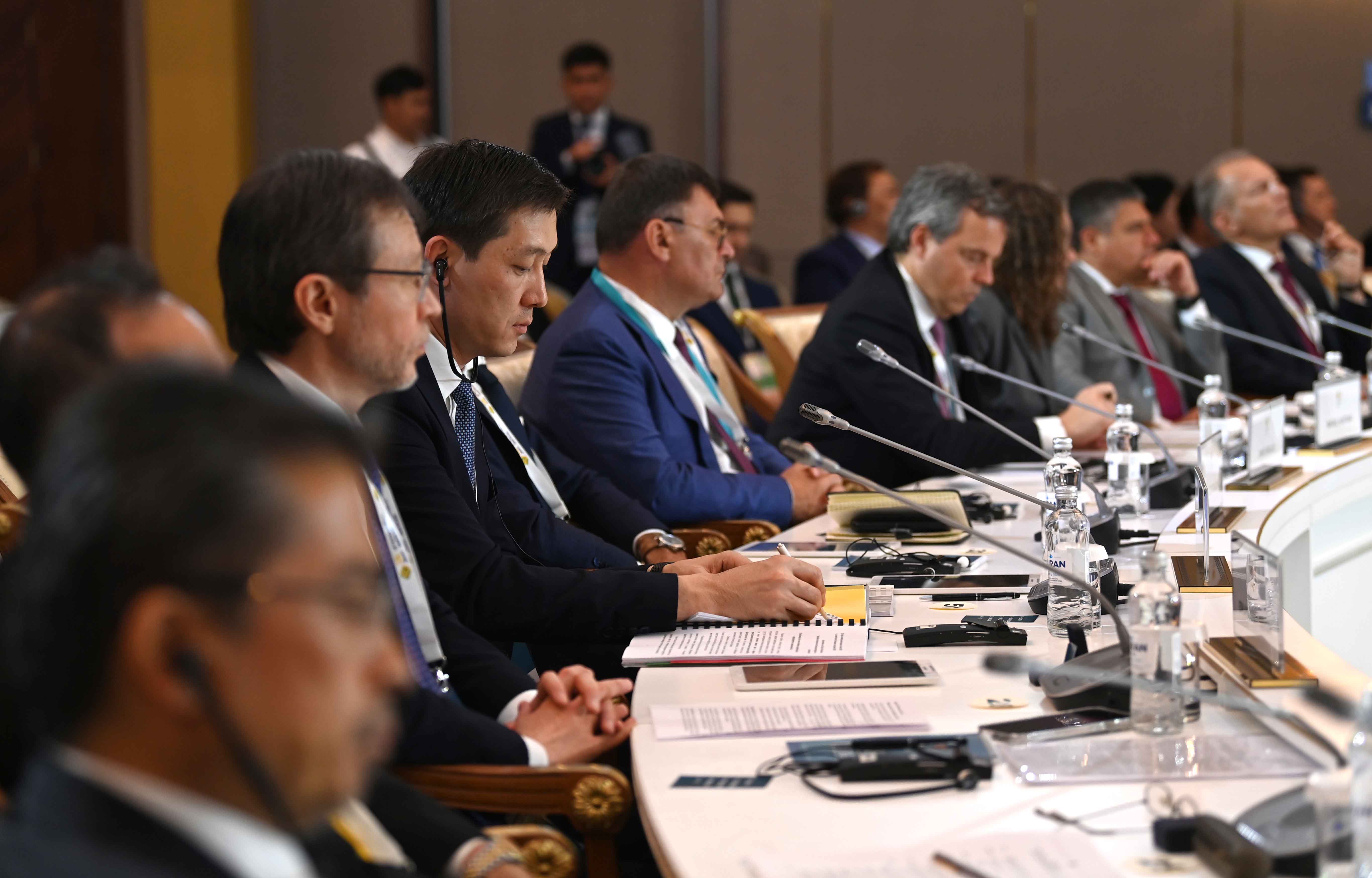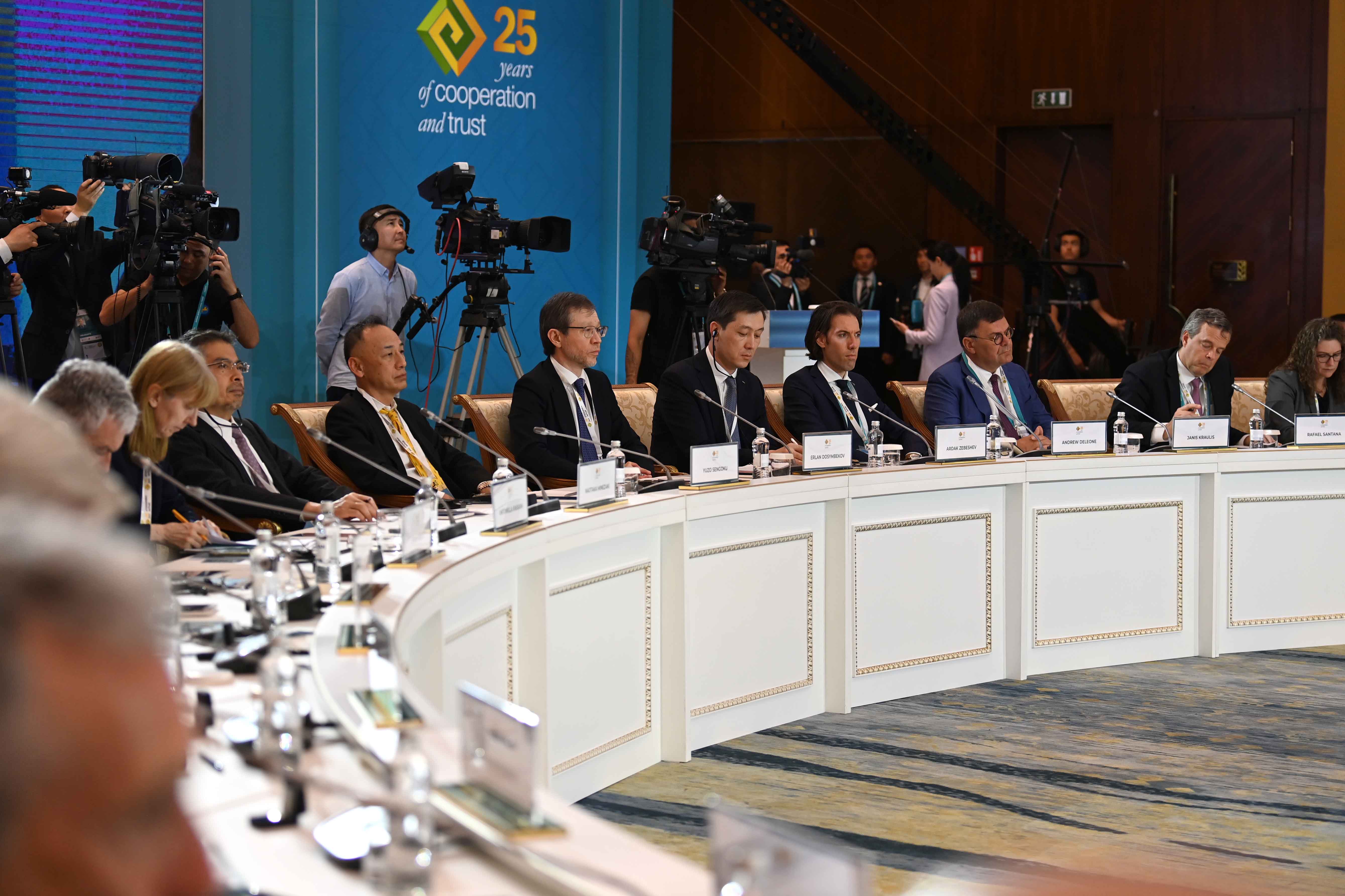 На заседании также выступили президент Европейского банка реконструкции и развития Одиль Рено-Бассо, заместитель Премьер-министра – министр иностранных дел Мурат Нуртлеу, министр цифрового развития, инноваций и аэрокосмической промышленности Багдат Мусин, председатель правления Ассоциации «Казахстанский совет иностранных инвесторов» Ерлан Досымбеков, президент Азиатского банка развития Масацугу Асакава, президент компании CNPC Хоу Цзицзюнь, главный исполнительный директор компании Shell plc Уаэл Сауан, исполнительный вице-президент корпорации Chevron Найджел Хирн, президент по СНГ и Центральной Азии Philip Morris International Марко Мариотти, главный исполнительный директор компании «ЛУКОЙЛ» Вадим Воробьев, управляющий партнер компании Ernst&Young по региону Европы, Ближнего Востока и Африки Джули Линн Тигланд, главный исполнительный директор Air Liquide Франсуа Жаков, председатель и главный исполнительный директор Baker Hughes Лоренцо Симонелли, генеральный директор подразделения Microsoft по Центральной и Восточной Европе Мишель Симмонс, президент и главный исполнительный директор Wabtec Corporation Рафаэль Сантана.