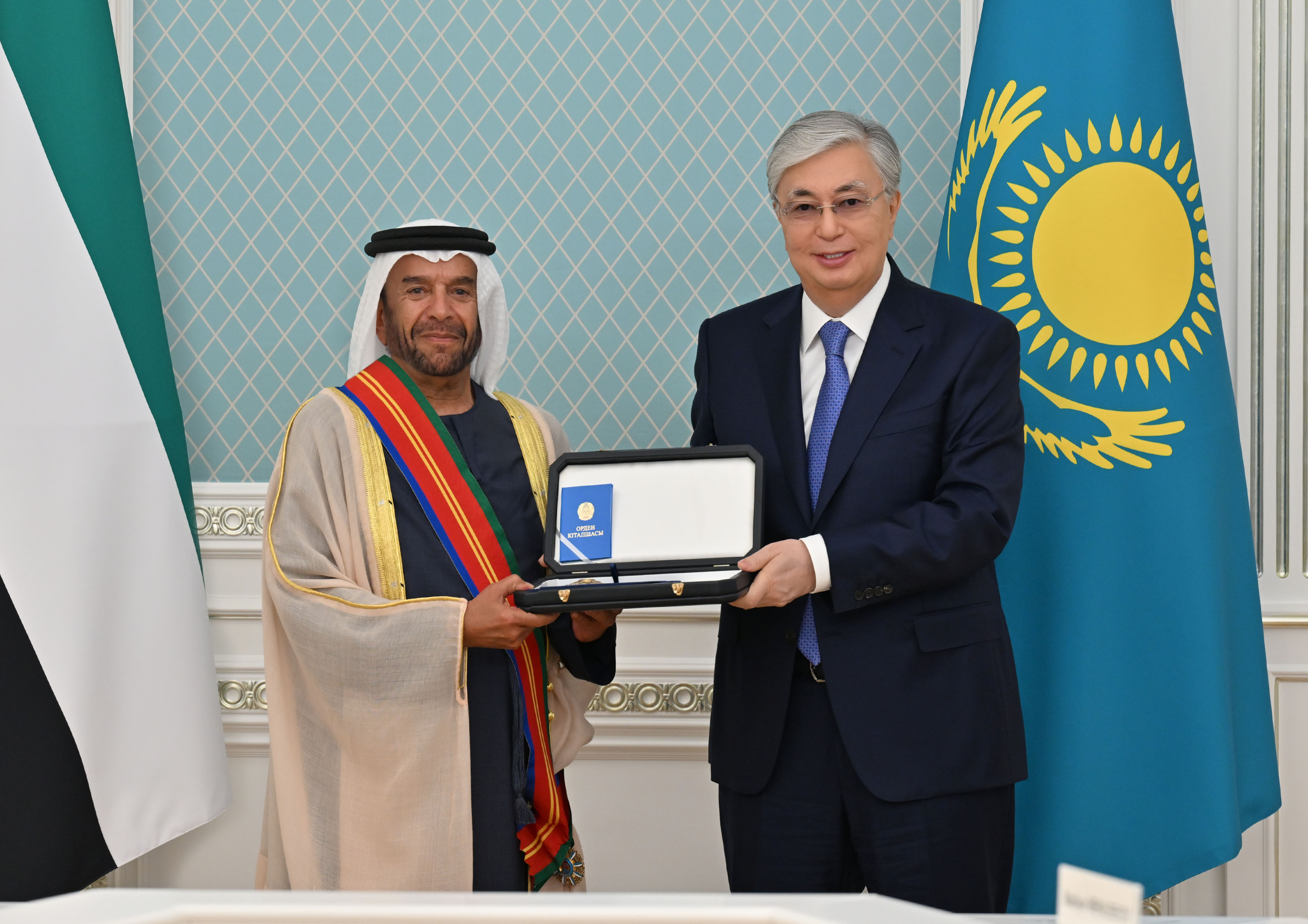 В завершение Глава государства вручил шейху Суруру бен Мухаммеду Аль Нахаяну за большой вклад в укрепление и развитие двусторонних отношений орден «Достық» I степени.
