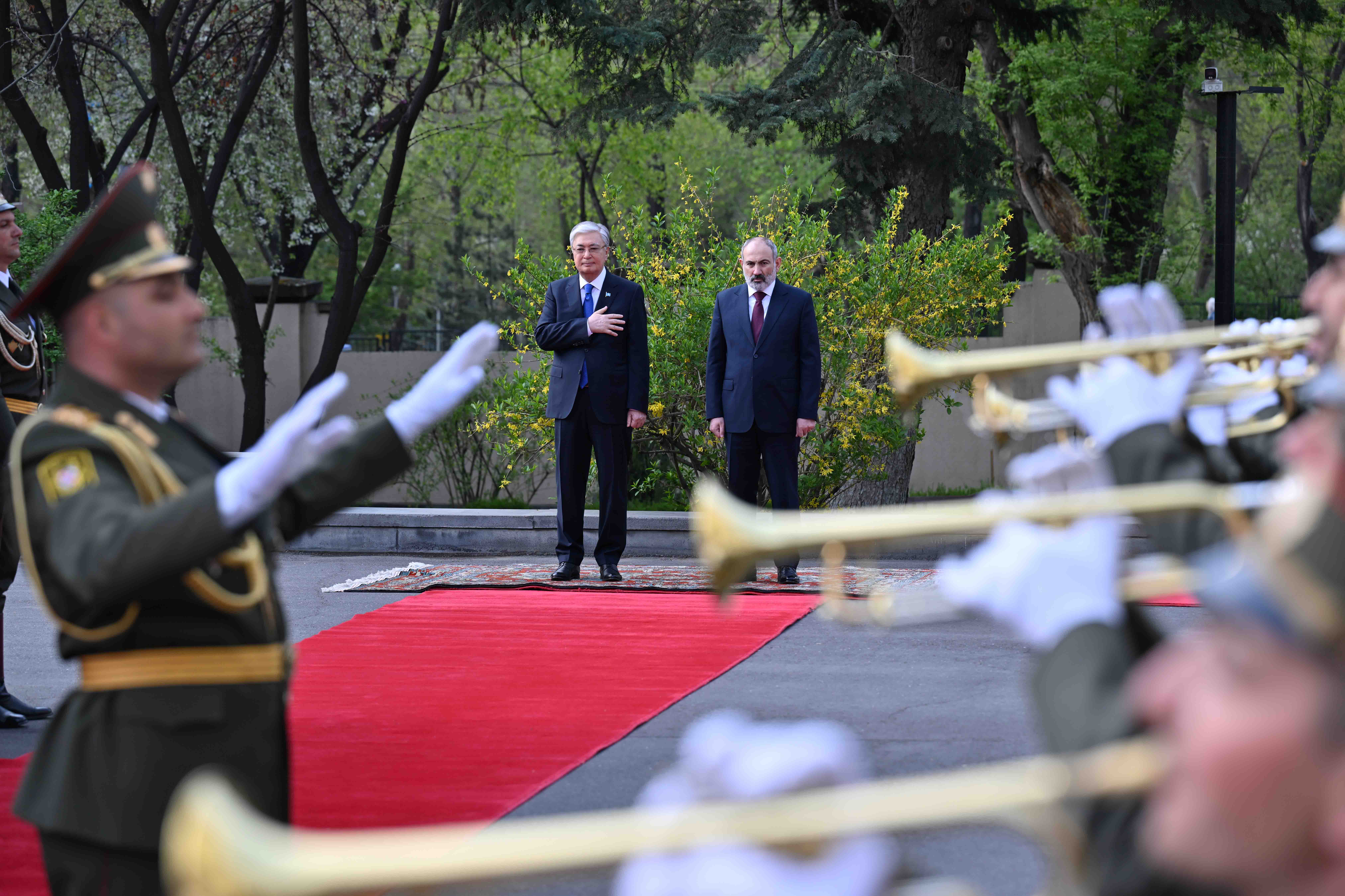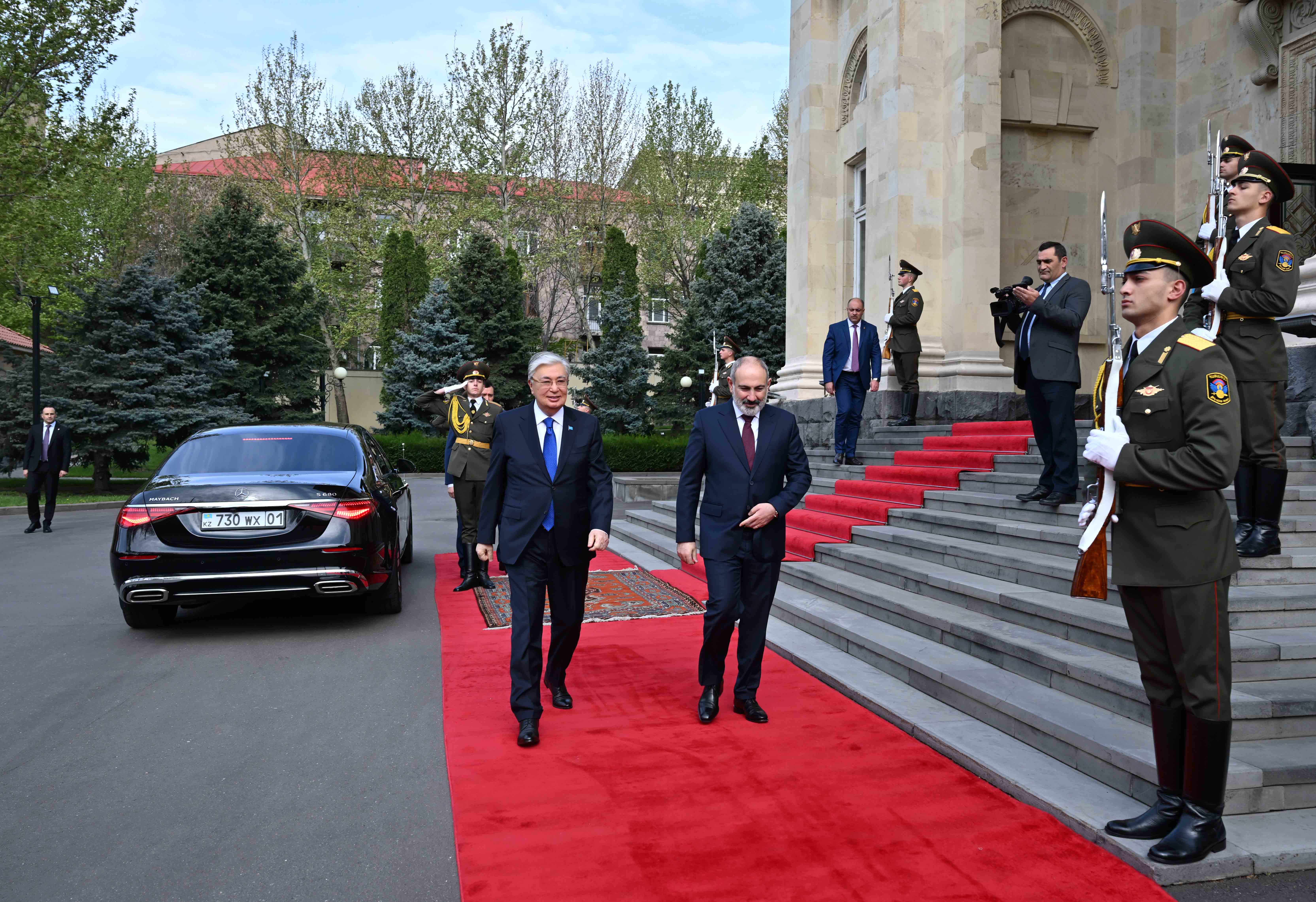 Касым-Жомарта Токаева, прибывшего с официальным визитом в Ереван, в Государственной резиденции встретил Премьер-министр Армении Никол Пашинян.