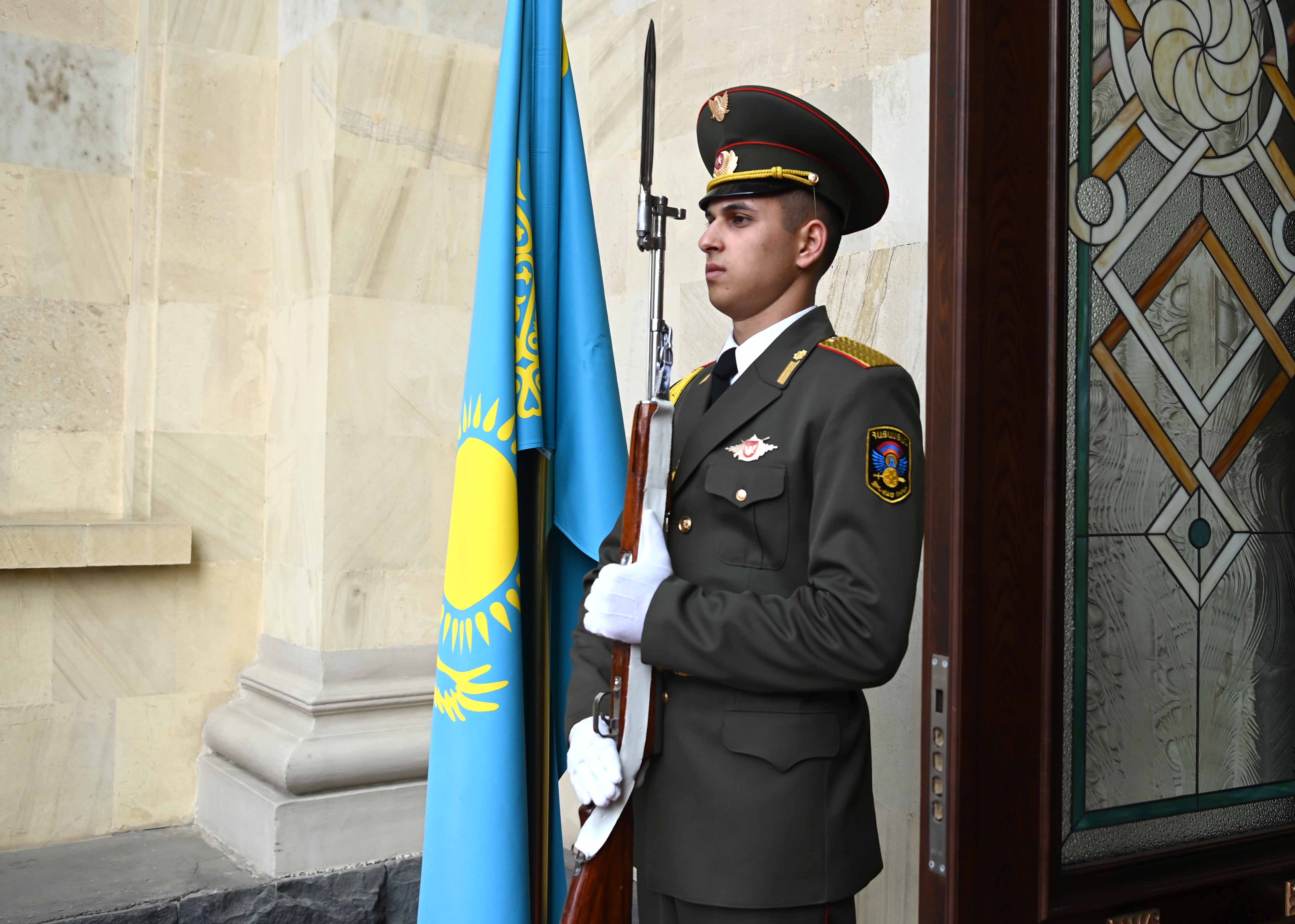 Начальник почетного караула отдал рапорт лидерам двух стран. После исполнения государственных гимнов Казахстана и Армении Касым-Жомарт Токаев и Никол Пашинян представили друг другу членов официальных делегаций.