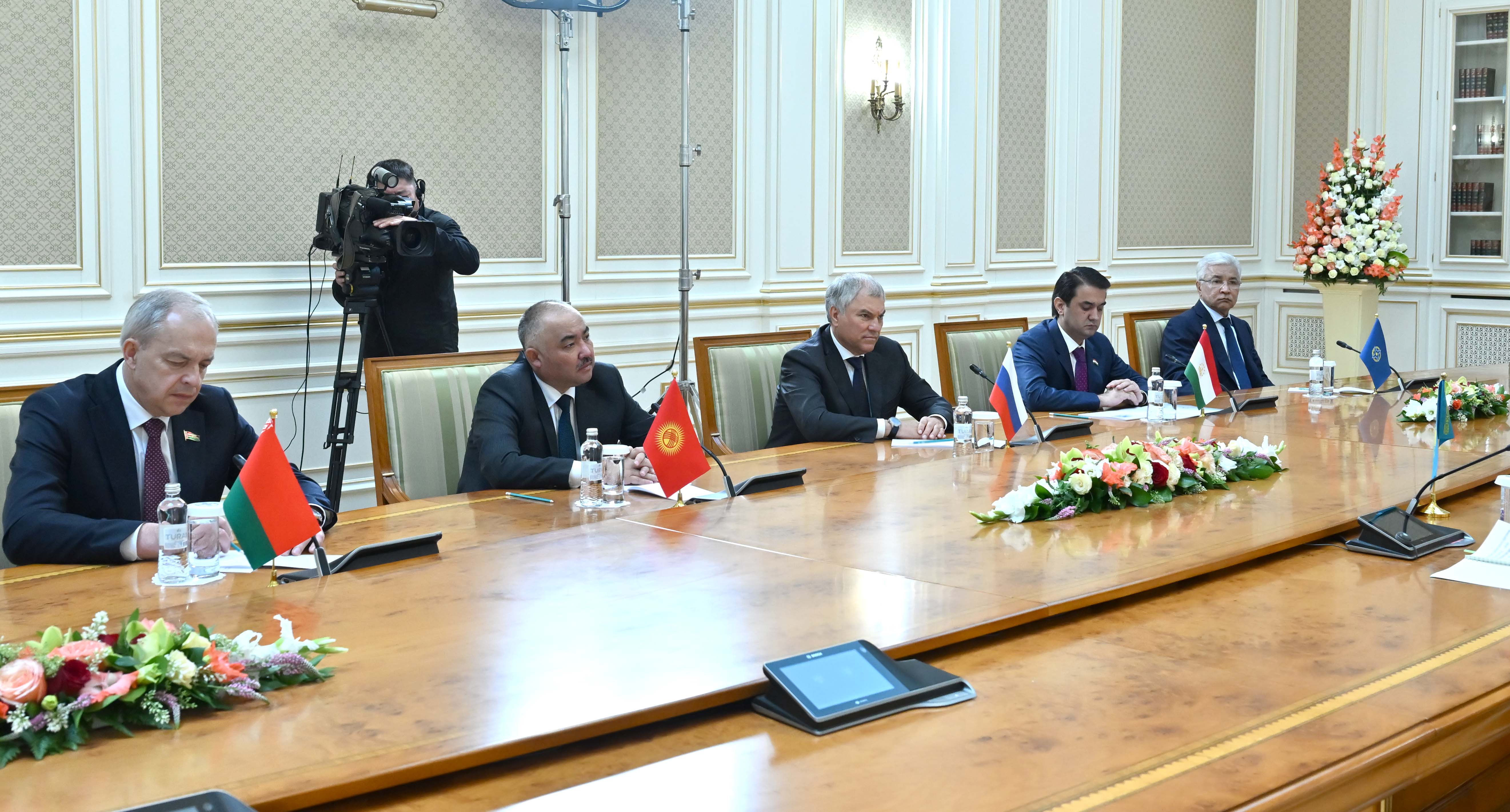 В ходе встречи также выступили Председатель Парламентской Ассамблеи ОДКБ – Председатель Государственной Думы Федерального Собрания Российской Федерации Вячеслав Володин, Председатель Палаты представителей Национального собрания Республики Беларусь Игорь Сергеенко, Председатель Маджлиси милли Маджлиси Оли Республики Таджикистан Рустами Эмомали.