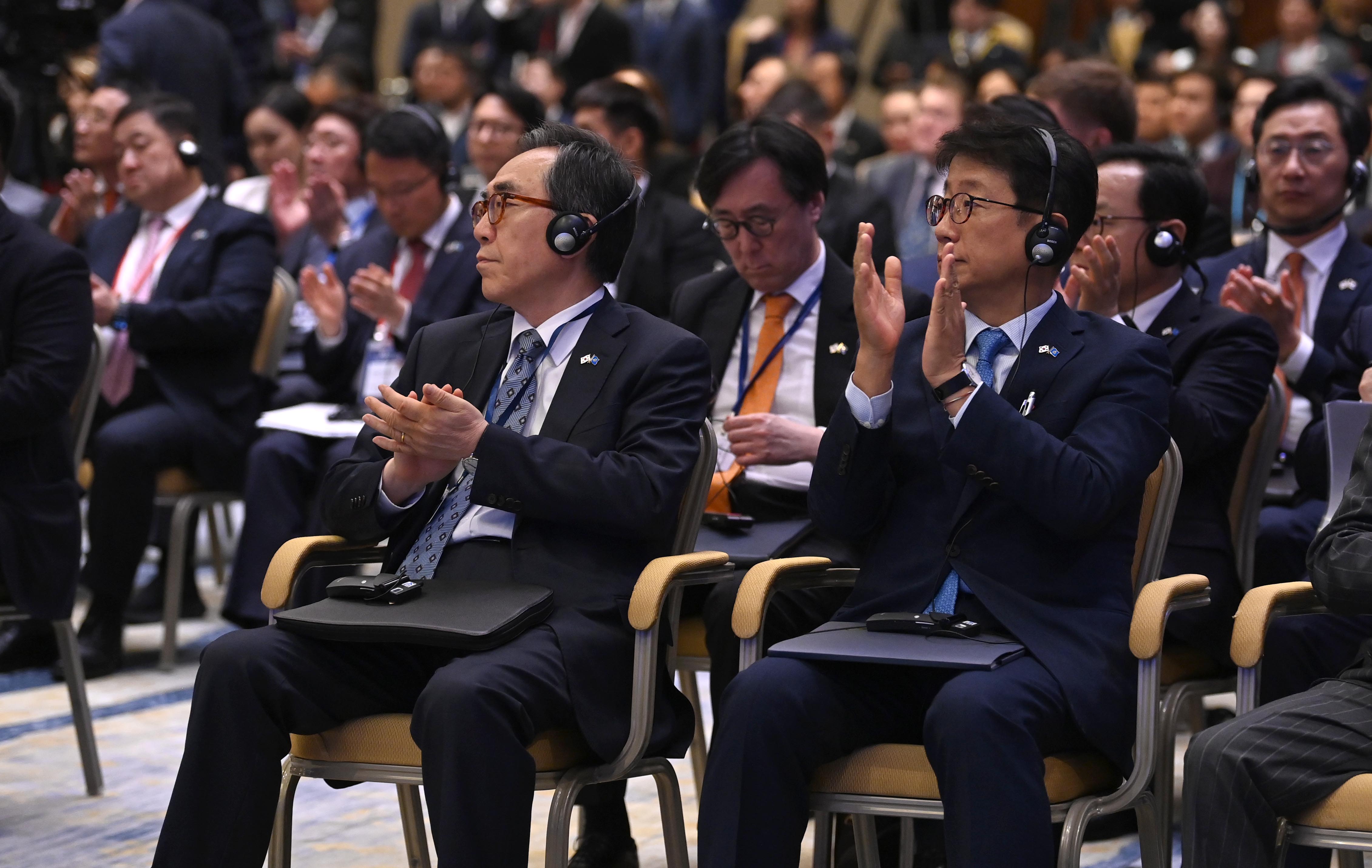 На форуме также выступили Президент Республики Корея Юн Сок Ёль, председатель Корейской ассоциации международной торговли (сопредседатель Делового совета) Джин Сик Юн, председатель правления АО «Самрук-Қазына» Нурлан Жакупов, заместитель главы региональной штаб-квартиры Hyundai Motor Russia & CIS Им Дже У, генеральный директор Astana Motors Бекнур Несипбаев, вице-президент Doosan Enerbility Янг Юн Хо, заместитель председателя правления по стратегии и цифровизации АО «НК «Қазақстан темір жолы» Ануар Ахметжанов, директор филиала SK Ecoplant в городе Алматы Ли Джун Хек, заместитель акима Кызылординской области Ардак Зебешев и другие.