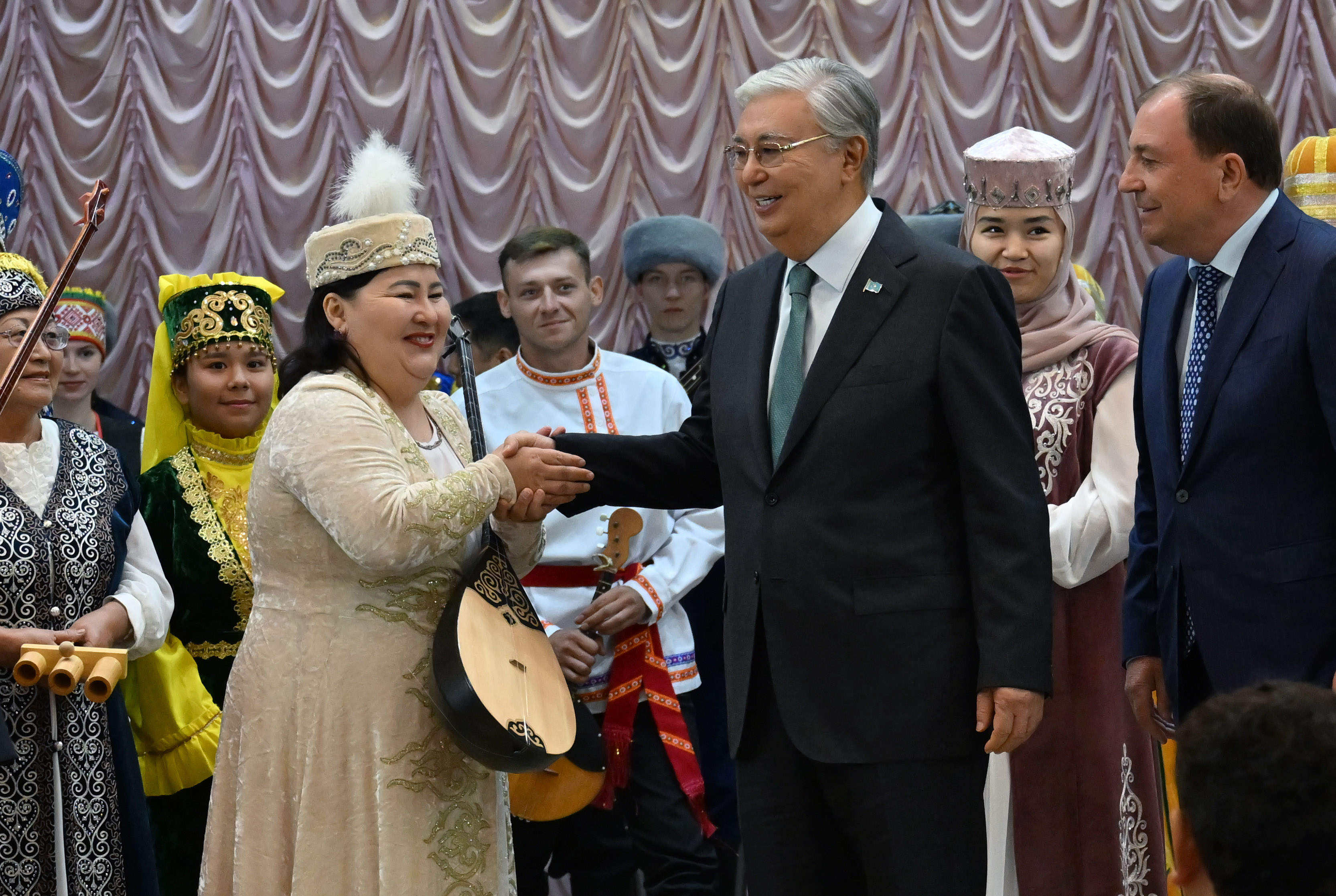 Глава государства посмотрел композицию «Достық шуағы» в исполнении артистов Дома культуры и побеседовал с местными жителями.