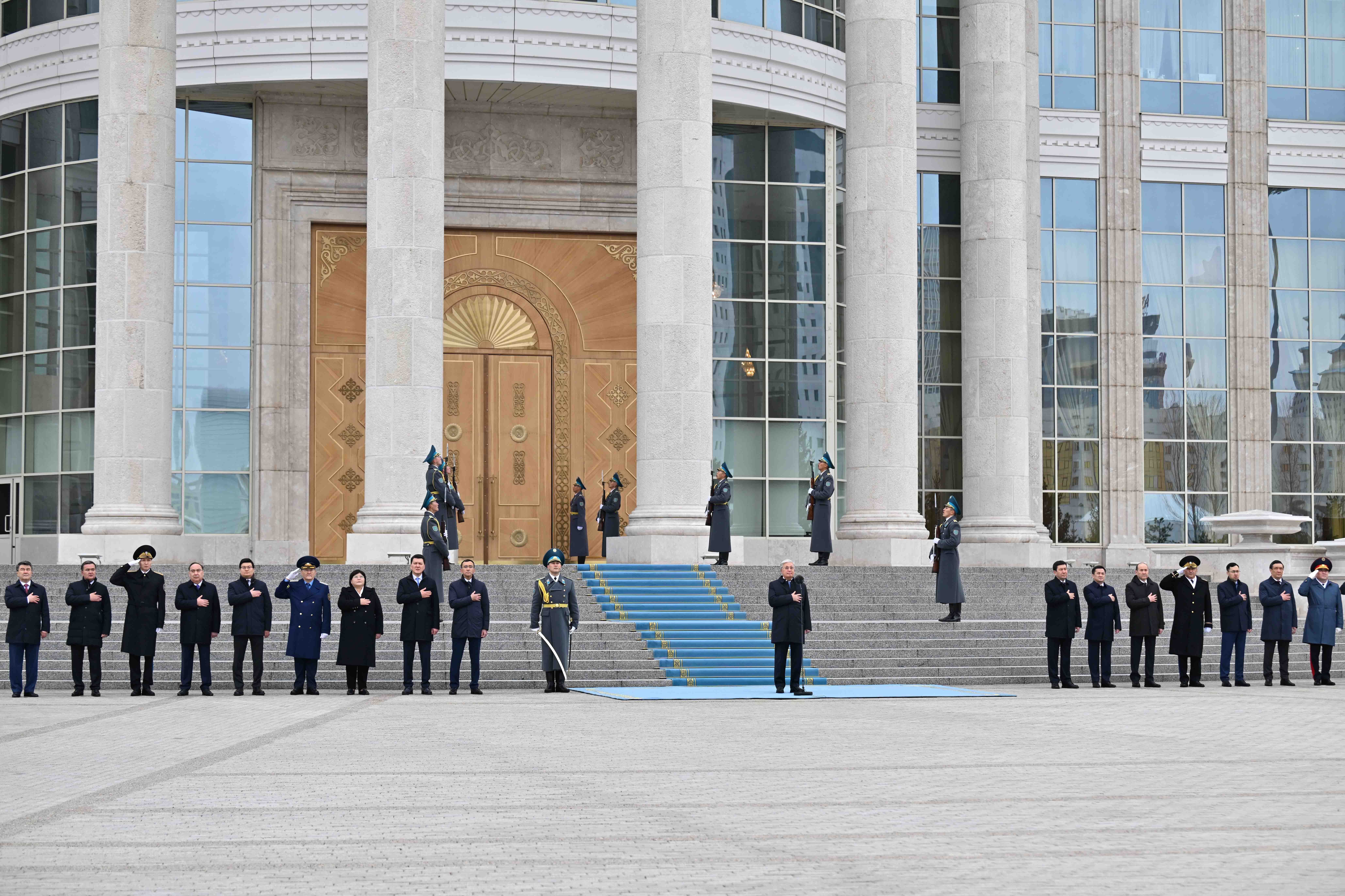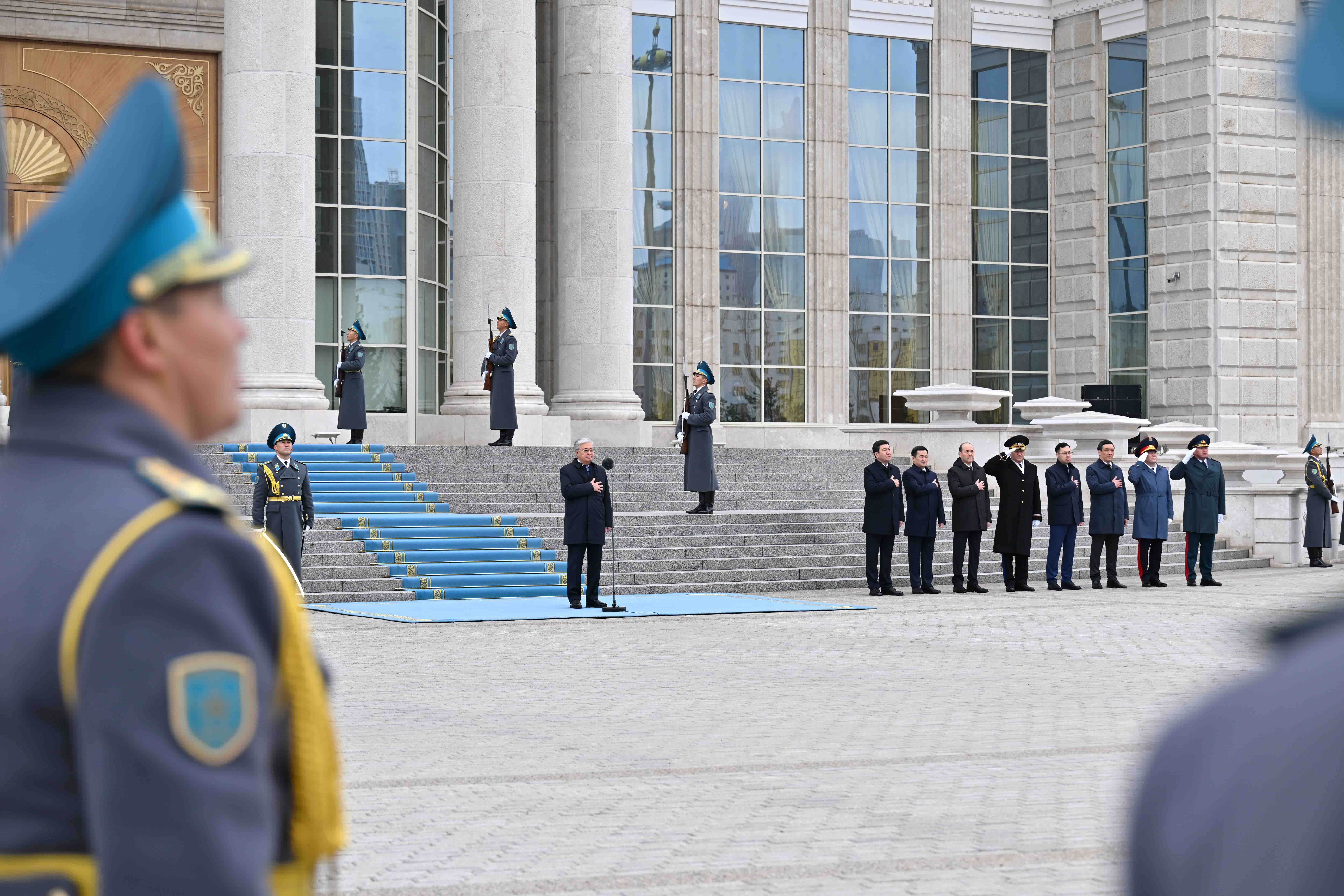 Касым-Жомарт Токаев принял участие в торжественной церемонии поднятия Государственного флага, приуроченной ко Дню Республики.
