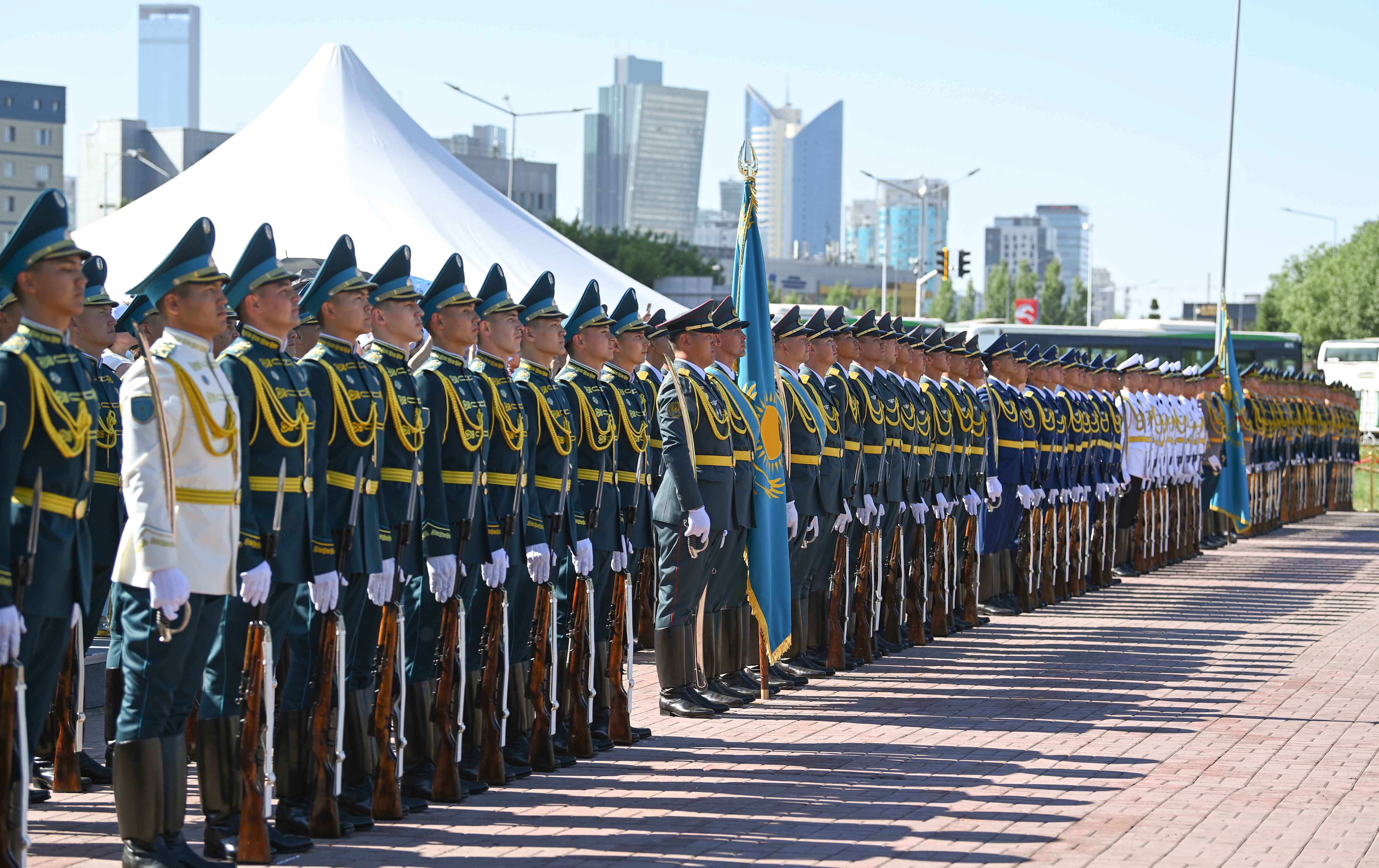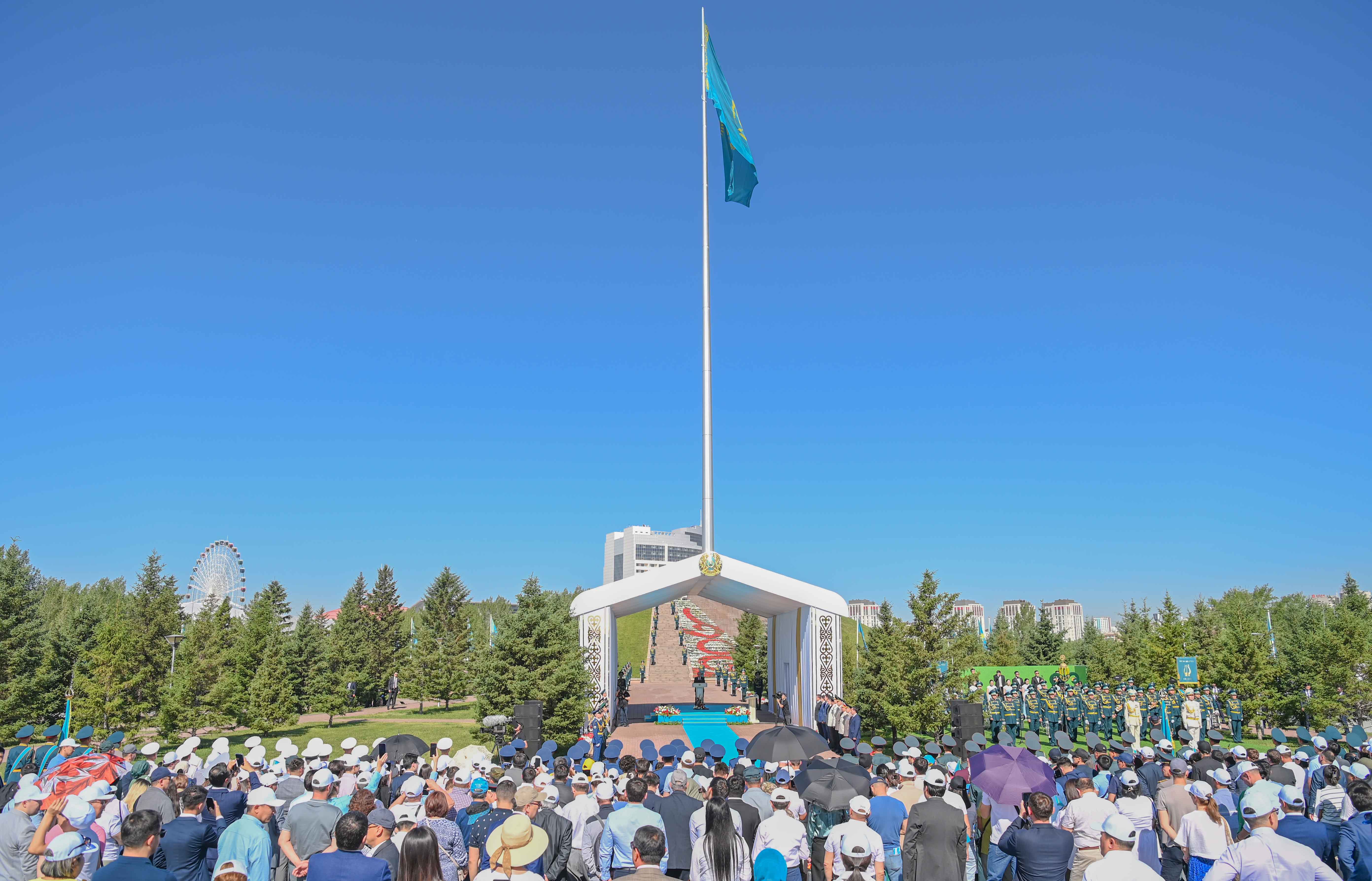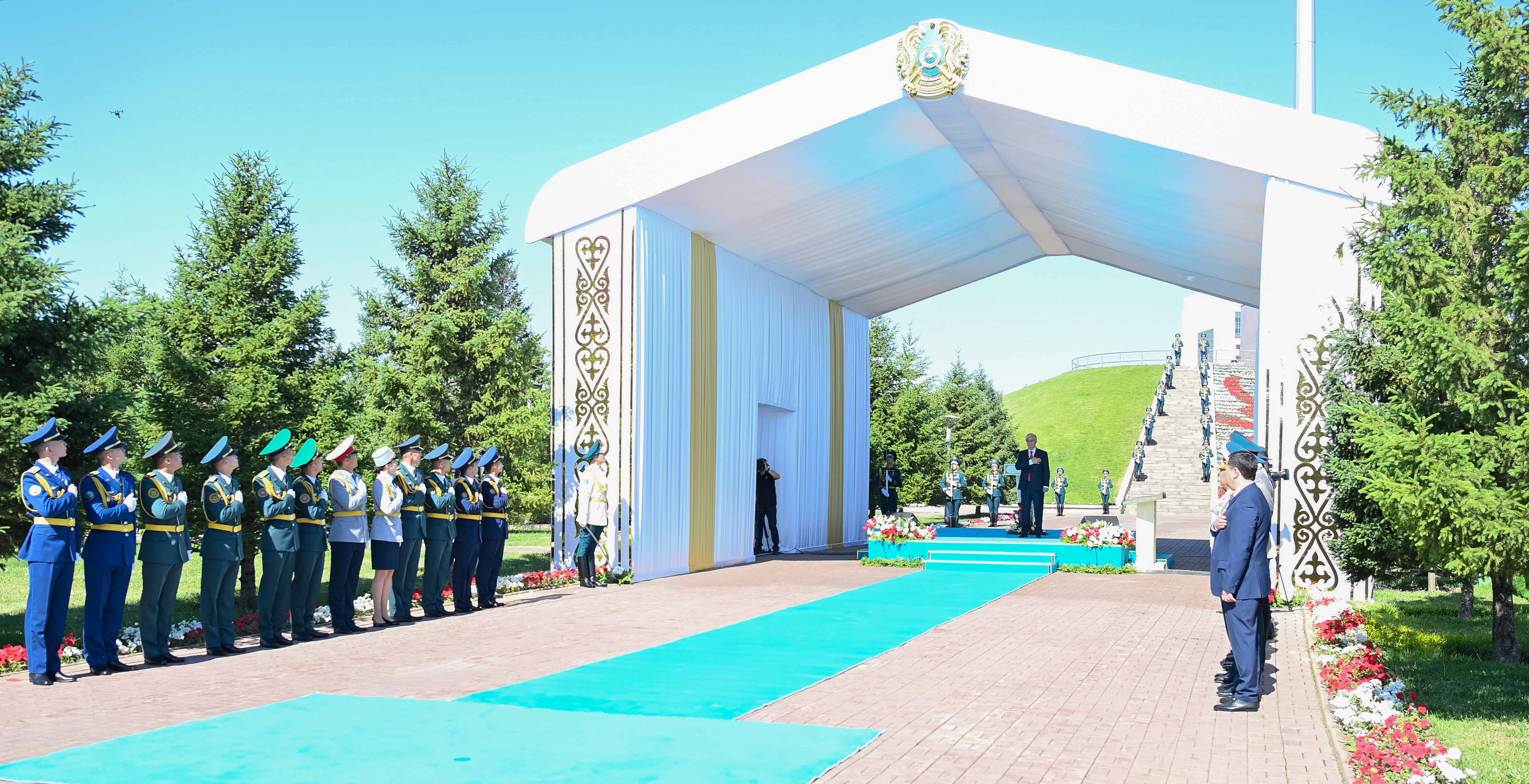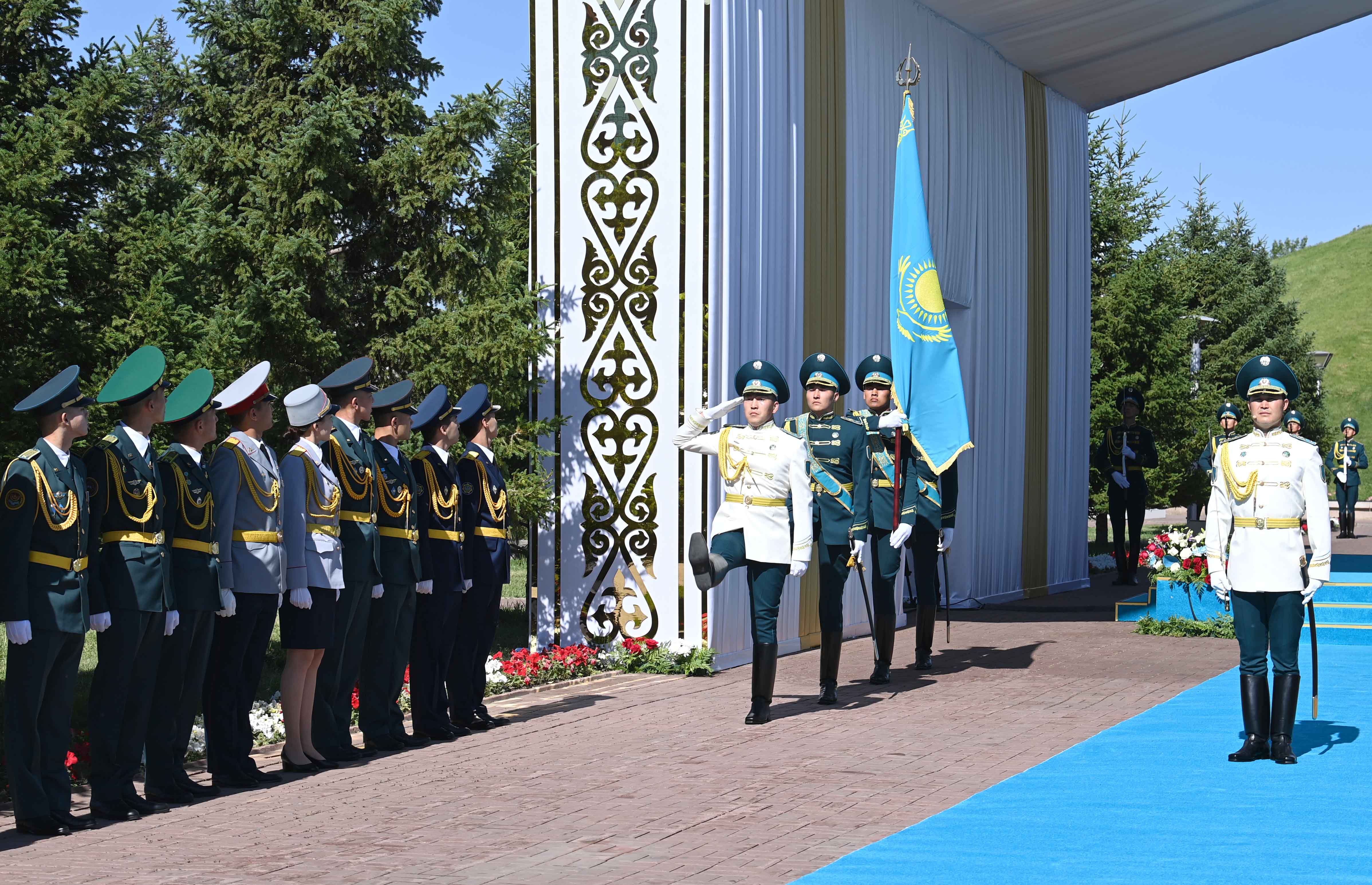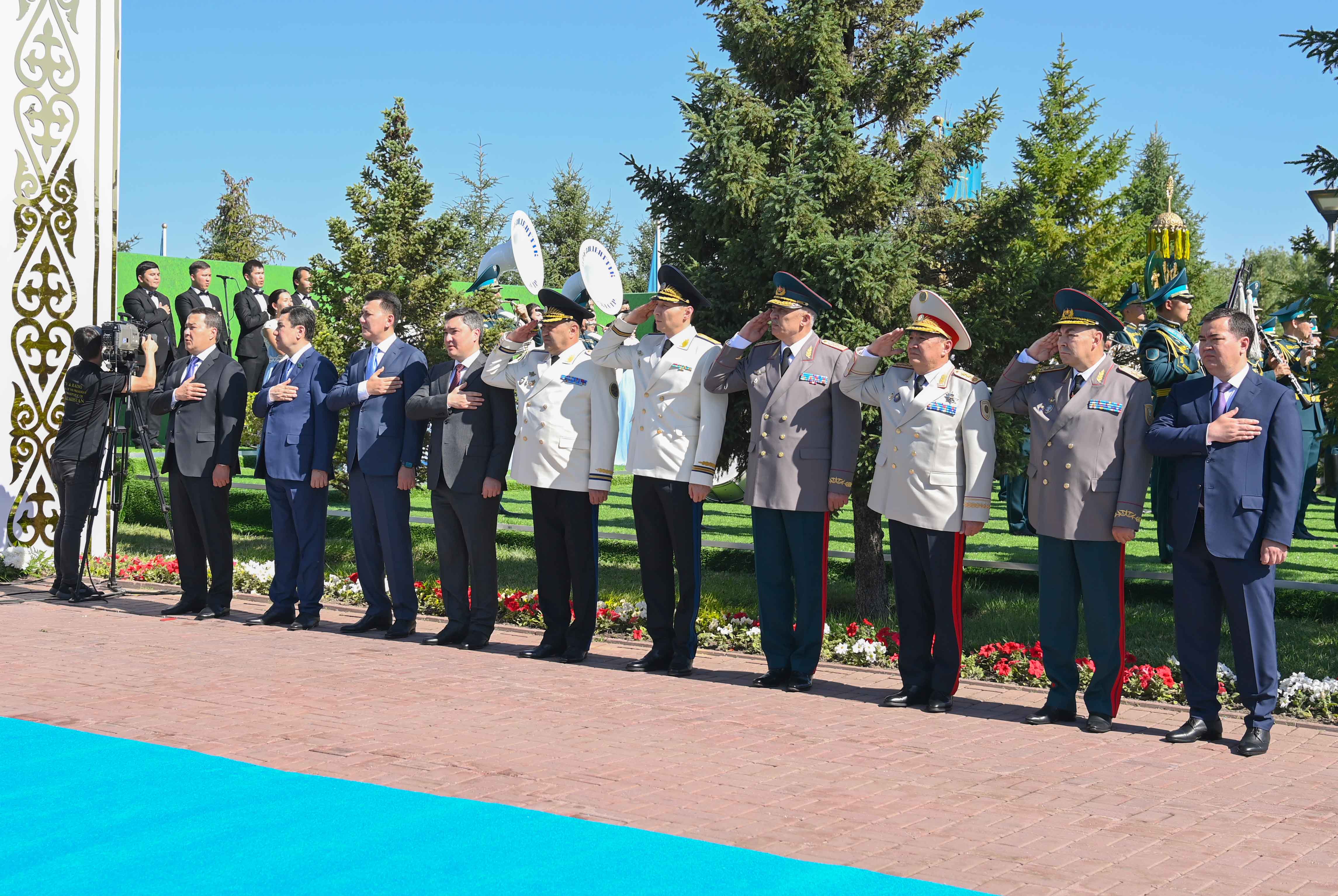 Президент Касым-Жомарт Токаев принял участие в торжественной церемонии поднятия Государственного флага в этномемориальном комплексе «Атамекен». Начальник роты Почетного караула отдал Президенту рапорт о готовности к церемонии. Затем прозвучал Государственный гимн и был поднят Государственный флаг Республики Казахстан.