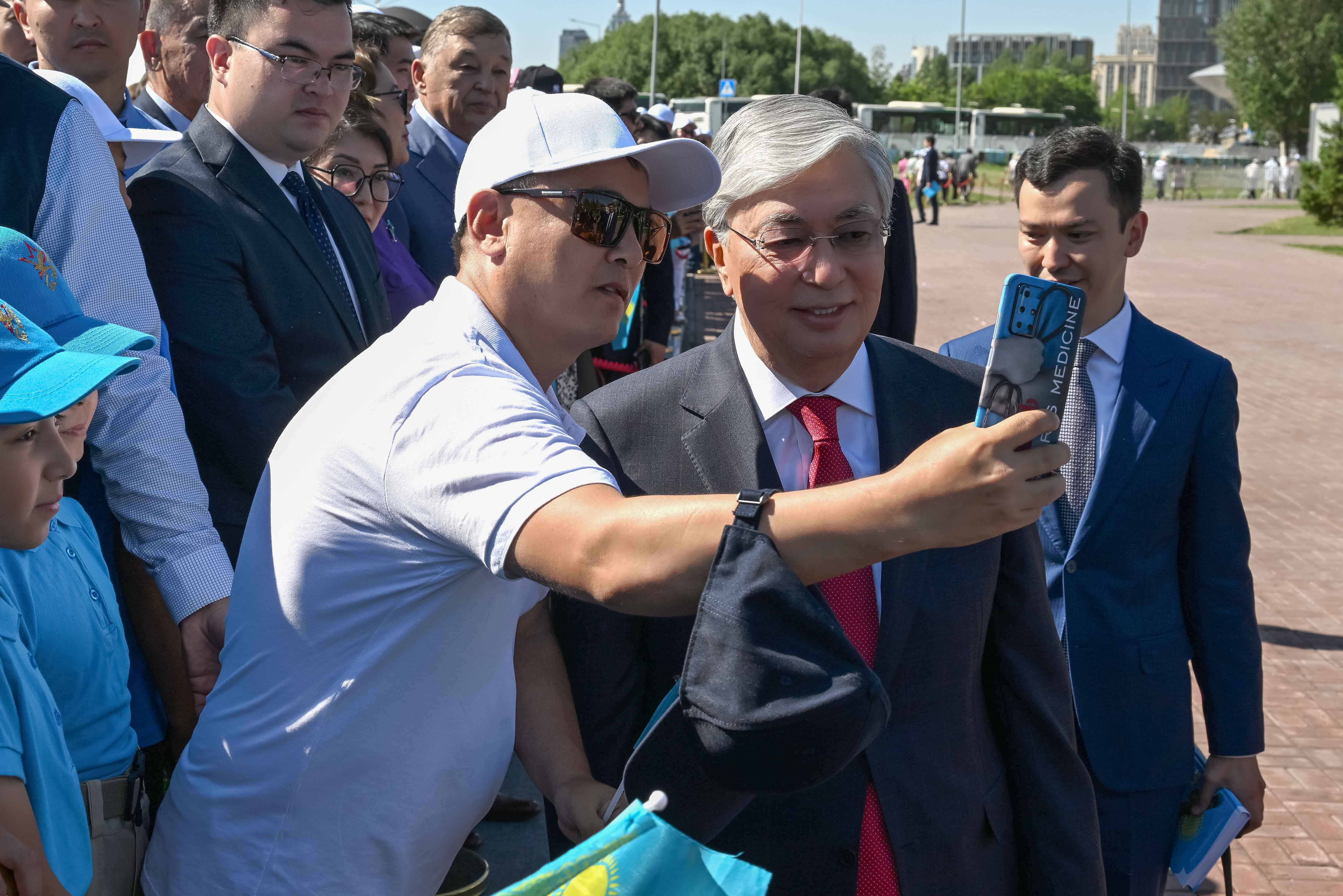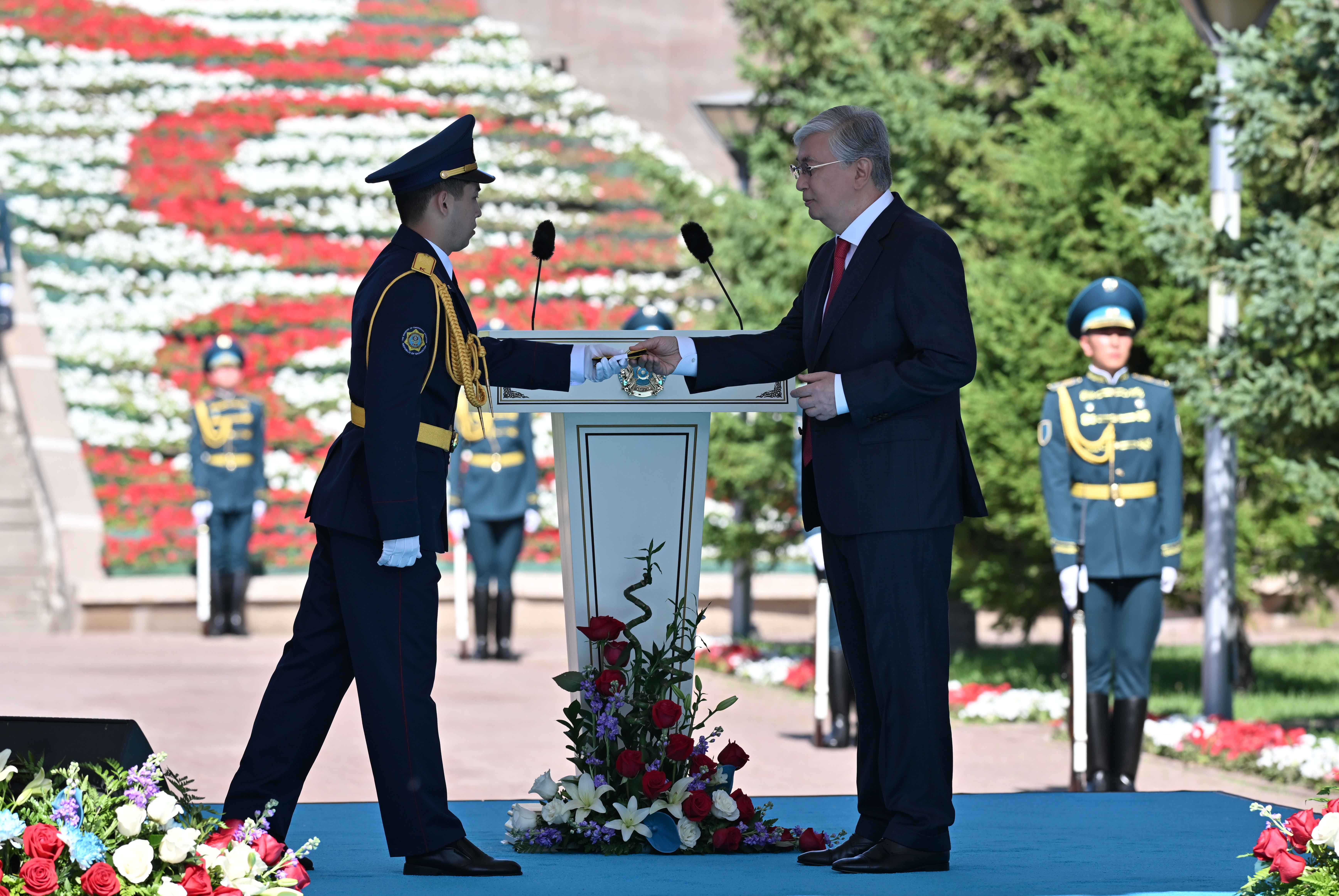 – Мы никому не позволим посягать на наши священные ценности. В этом году усилены меры наказания за надругательство над государственными символами. Особое внимание следует уделить разъяснительной работе среди населения. Патриотизм начинается именно с уважения к государственной символике. Мы даем хороший пример подрастающему поколению, прославляя наши государственные символы и воспитывая его в духе патриотизма и созидания. Поэтому сегодняшнее мероприятие имеет огромное просветительское и воспитательное значение, – сказал Касым-Жомарт Токаев.