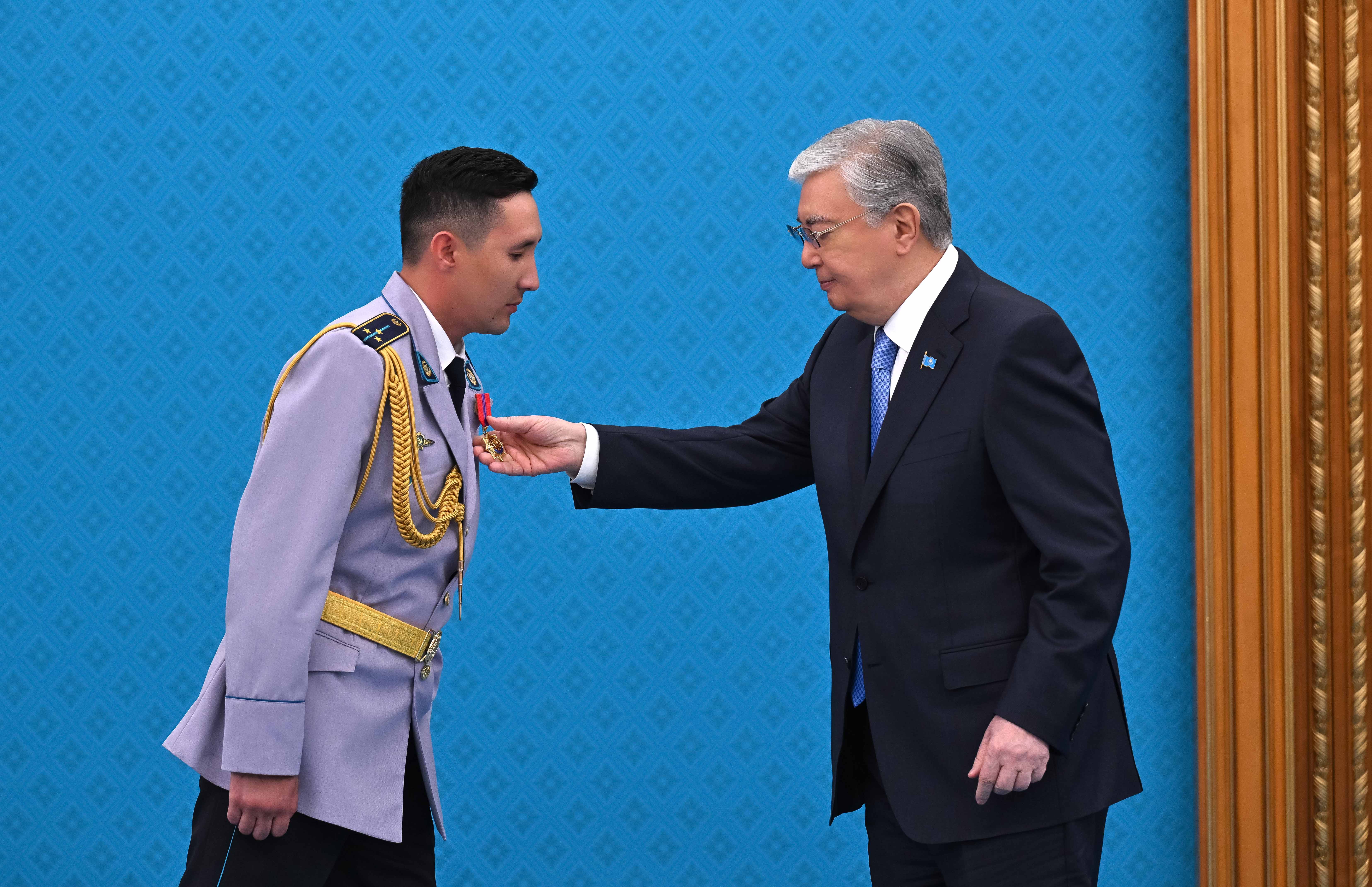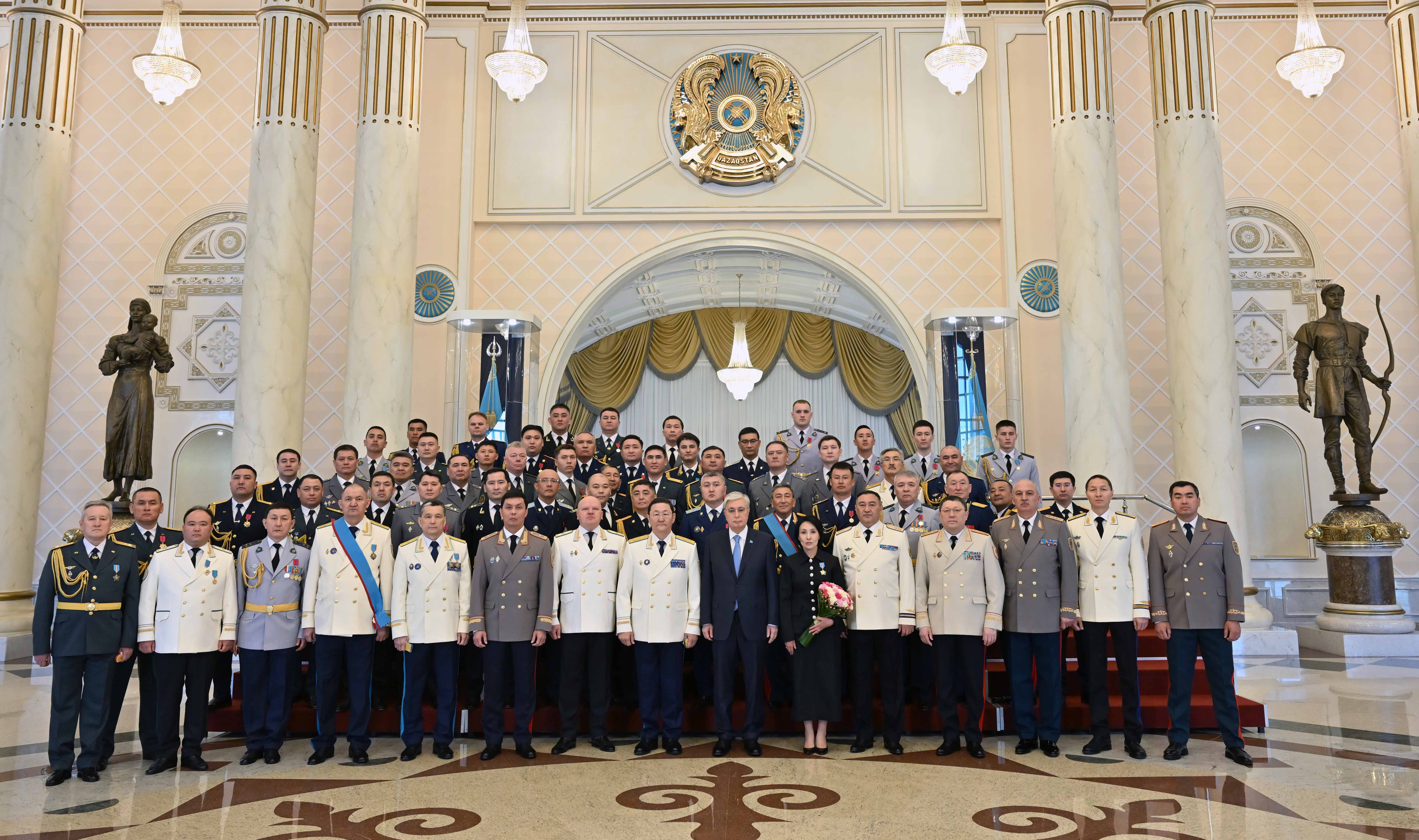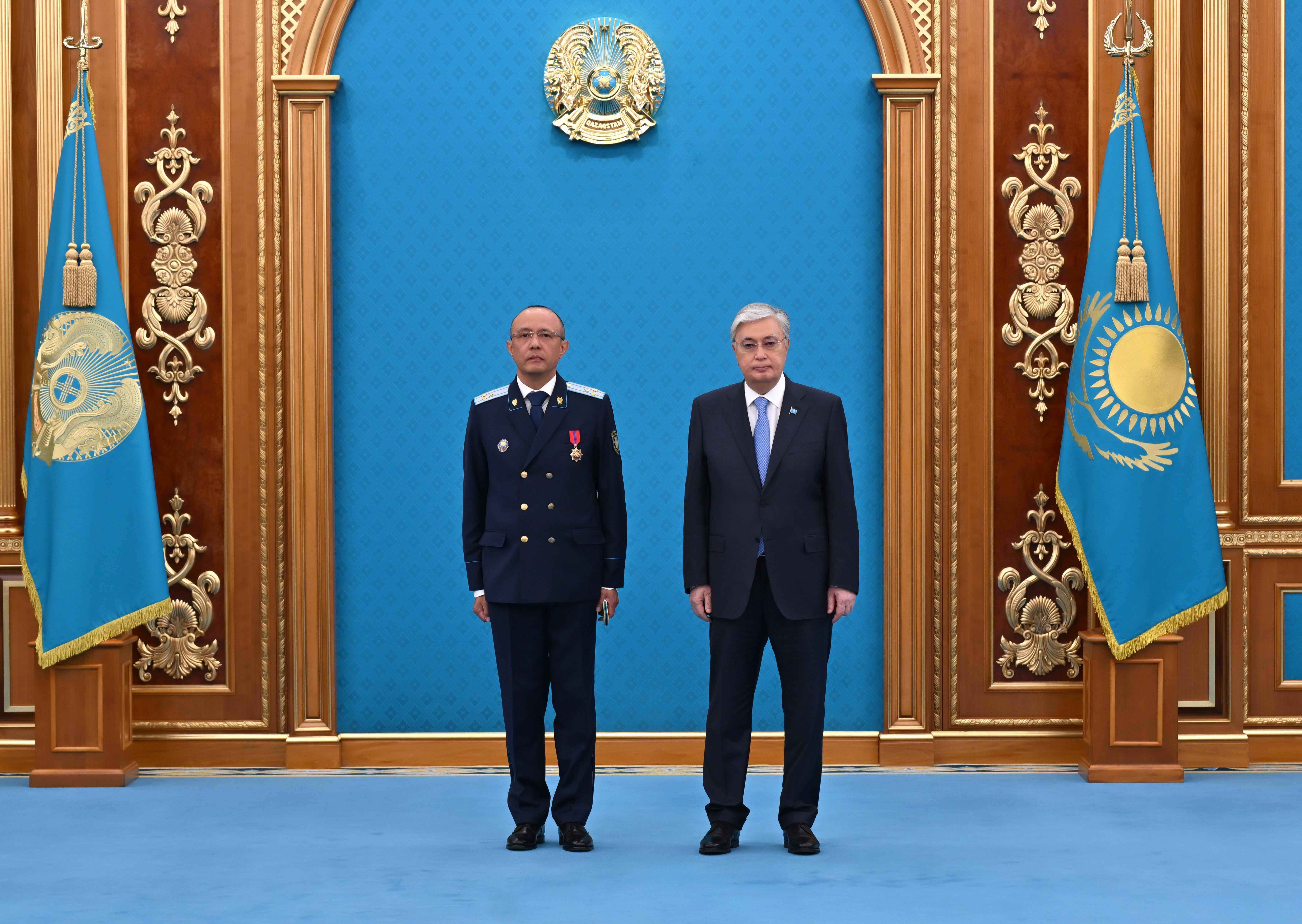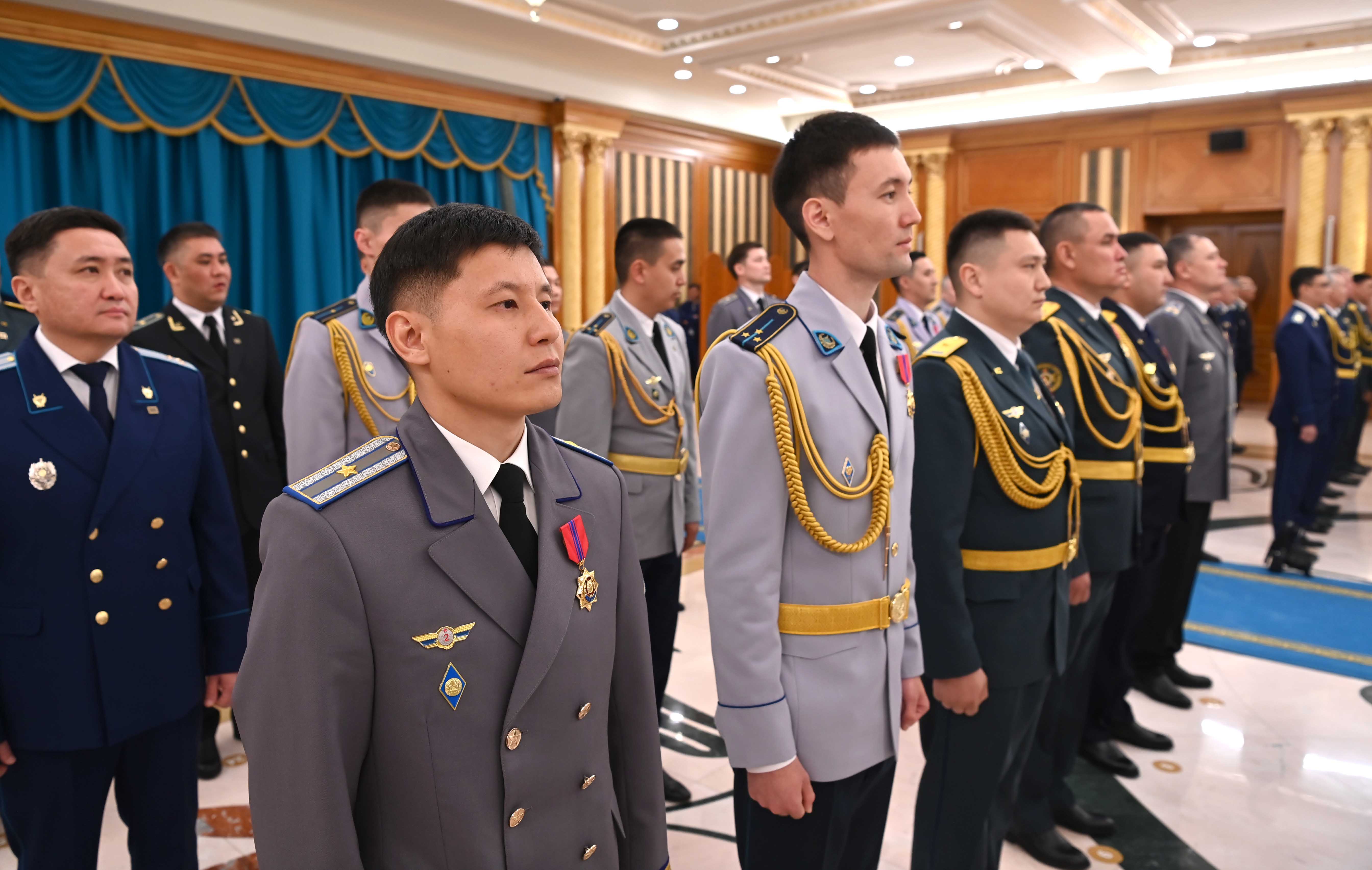 Касым-Жомарт Токаев также отметил государственными наградами ряд граждан за мужество и самоотверженность, проявленные при исполнении воинского и служебного долга, вклад в обеспечение национальной безопасности и обороноспособности страны, укрепление законности и правопорядка.