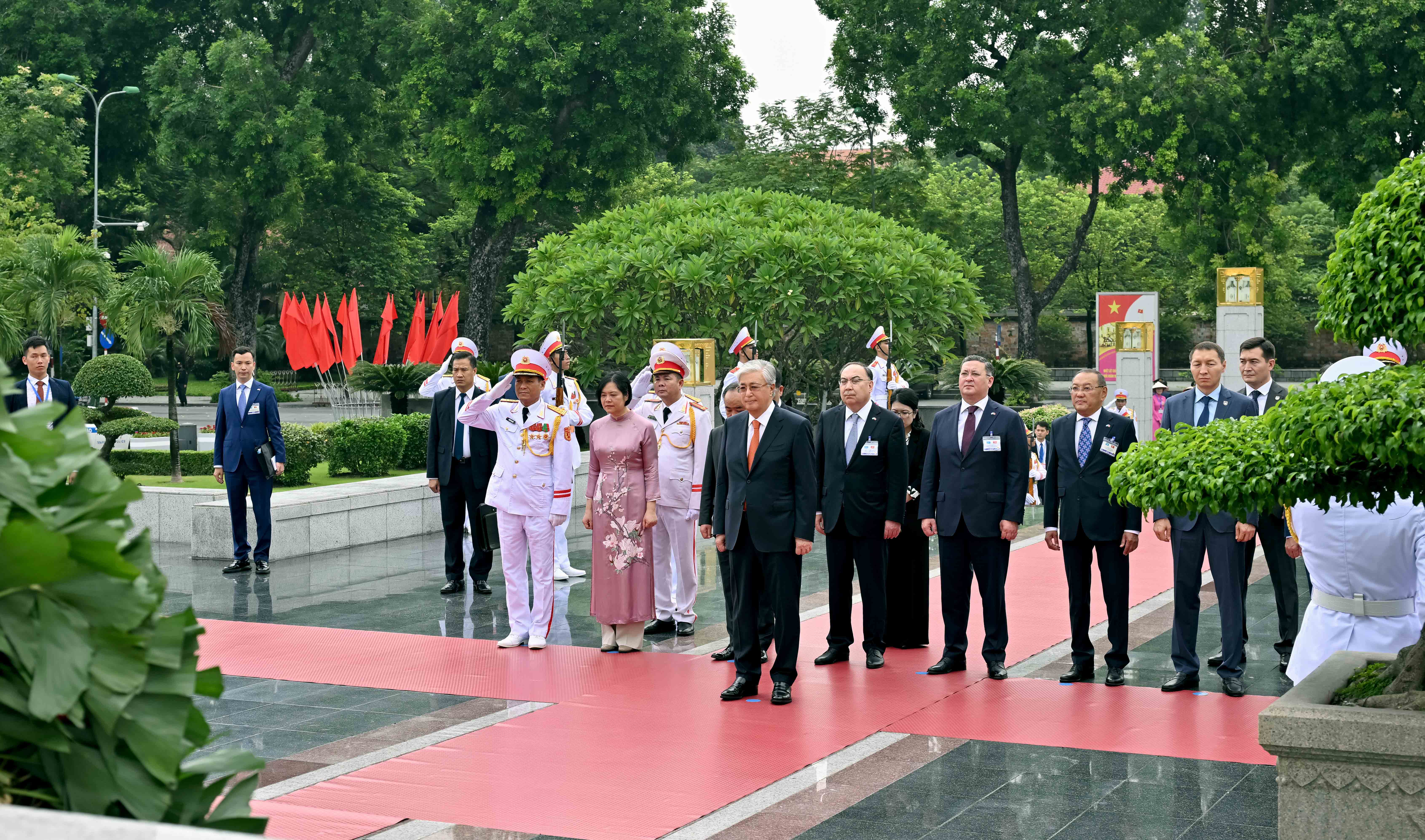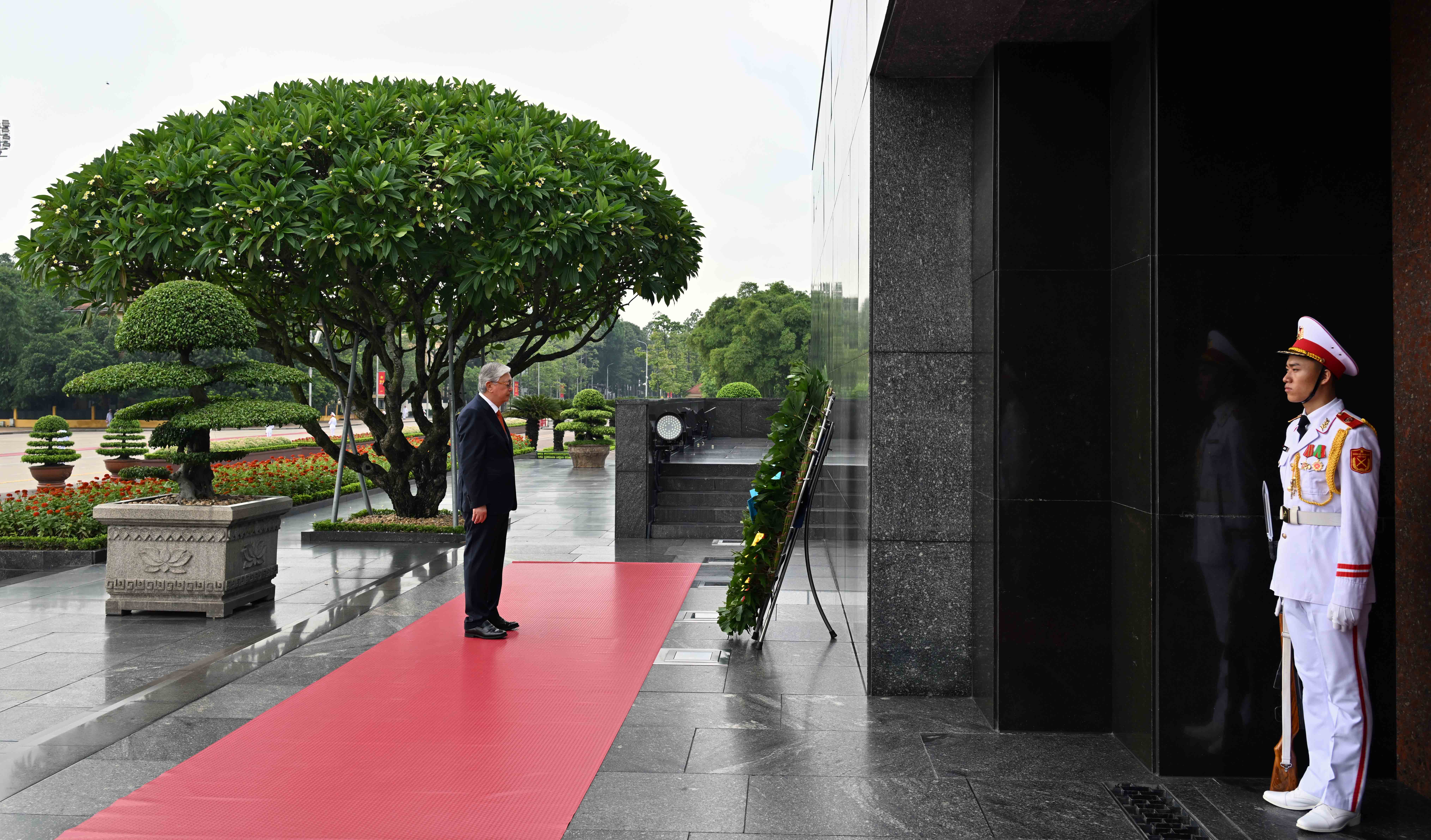 Официальный визит в Социалистическую Республику Вьетнам Главы государства Касым-Жомарта Токаева начался с церемонии возложения цветов к монументу национальным героям и мавзолею Хо Ши Мина, расположенным на площади Ба Динь.