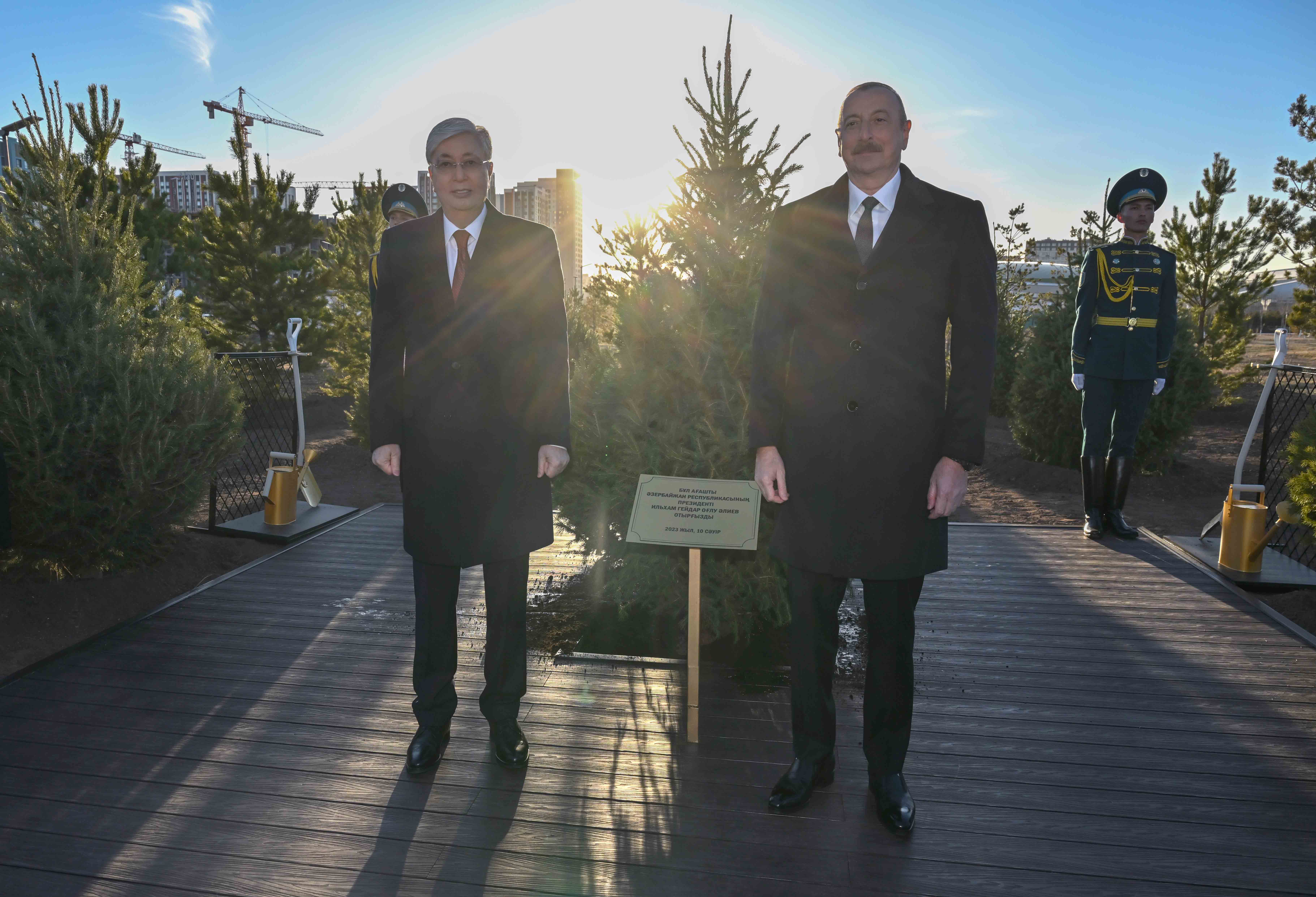 После торжественной церемонии азербайджанский Президент Ильхам Алиев в присутствии Касым-Жомарта Токаева посадил дерево в Ботаническом саду.