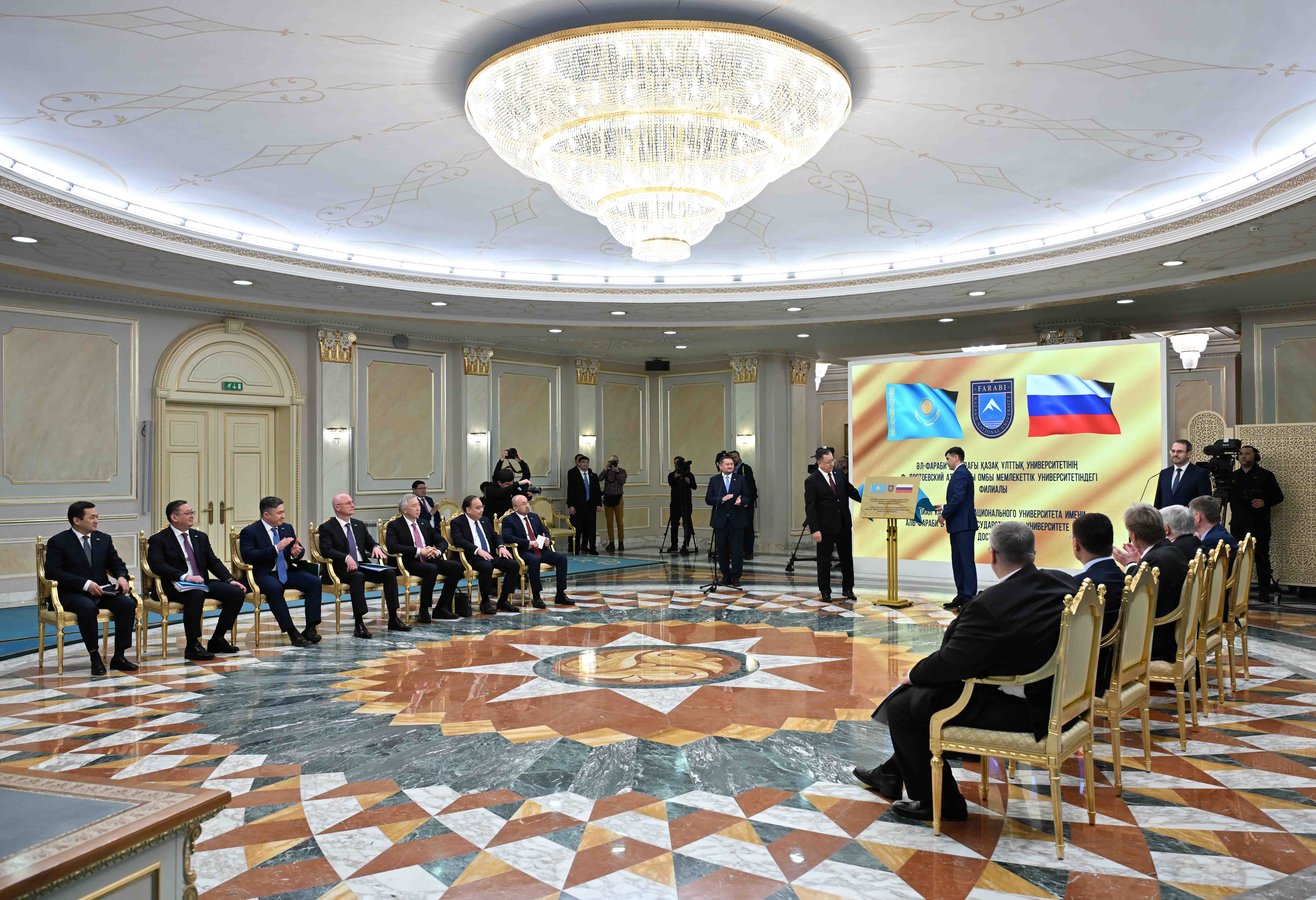 На торжественном мероприятии также присутствовали ректор КазНУ Жансеит Туймебаев и ректор ОмГУ Сергей Замятин.