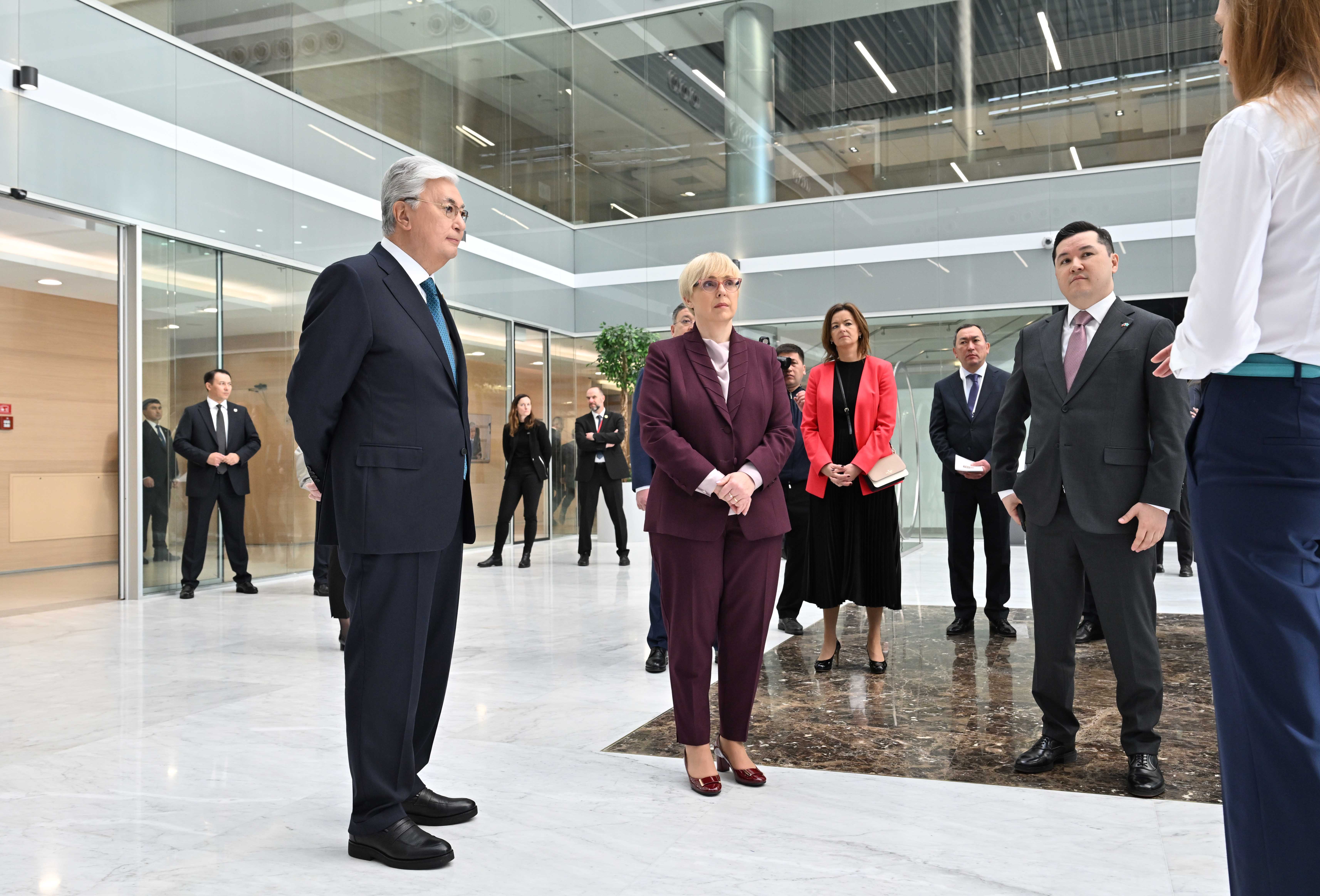 Глава государства Касым-Жомарт Токаев и Президент Словении Наташа Пирц-Мусар, находящаяся с официальным визитом в Казахстане, посетили Международный финансовый центр Астана (МФЦА).