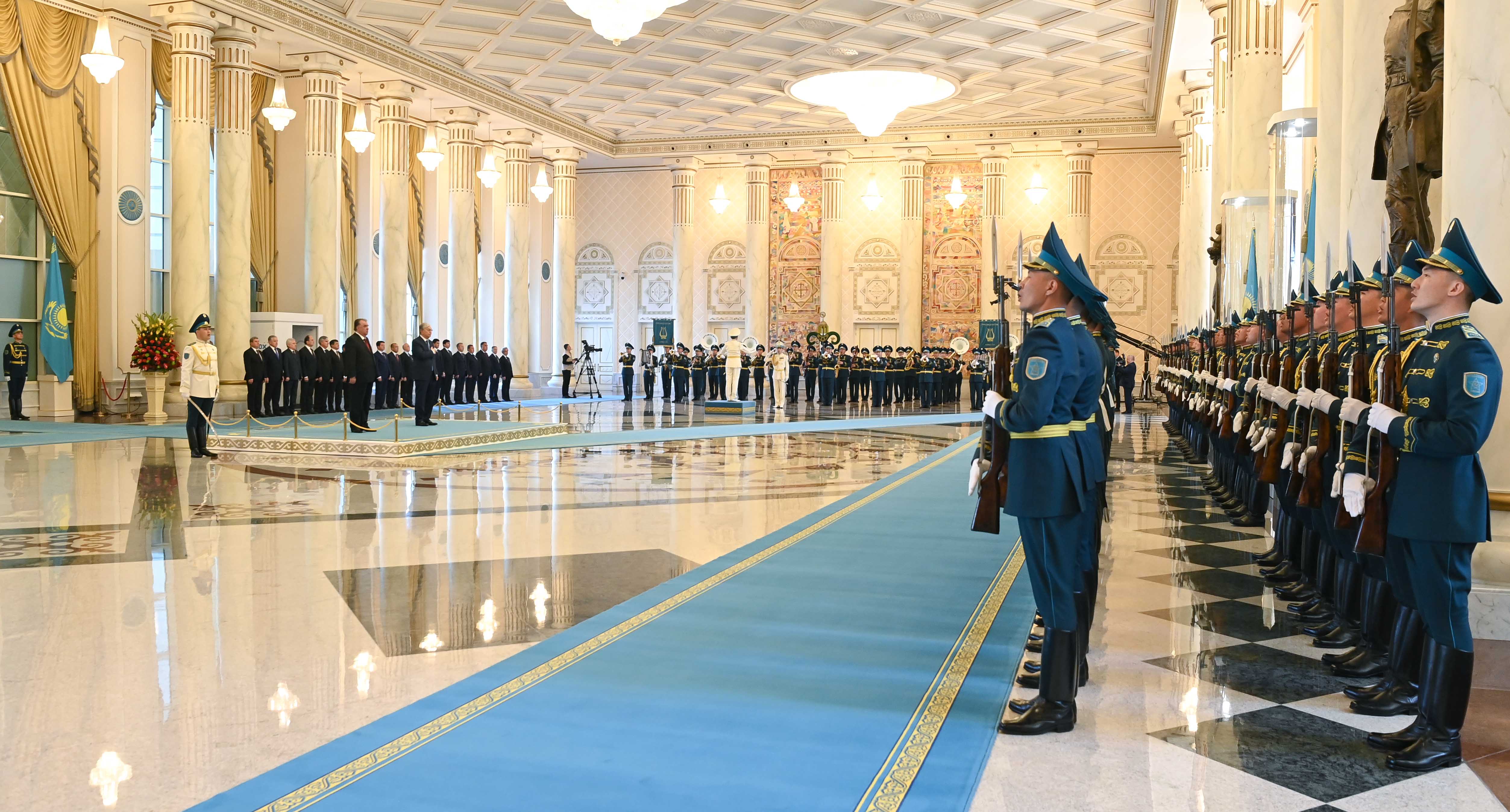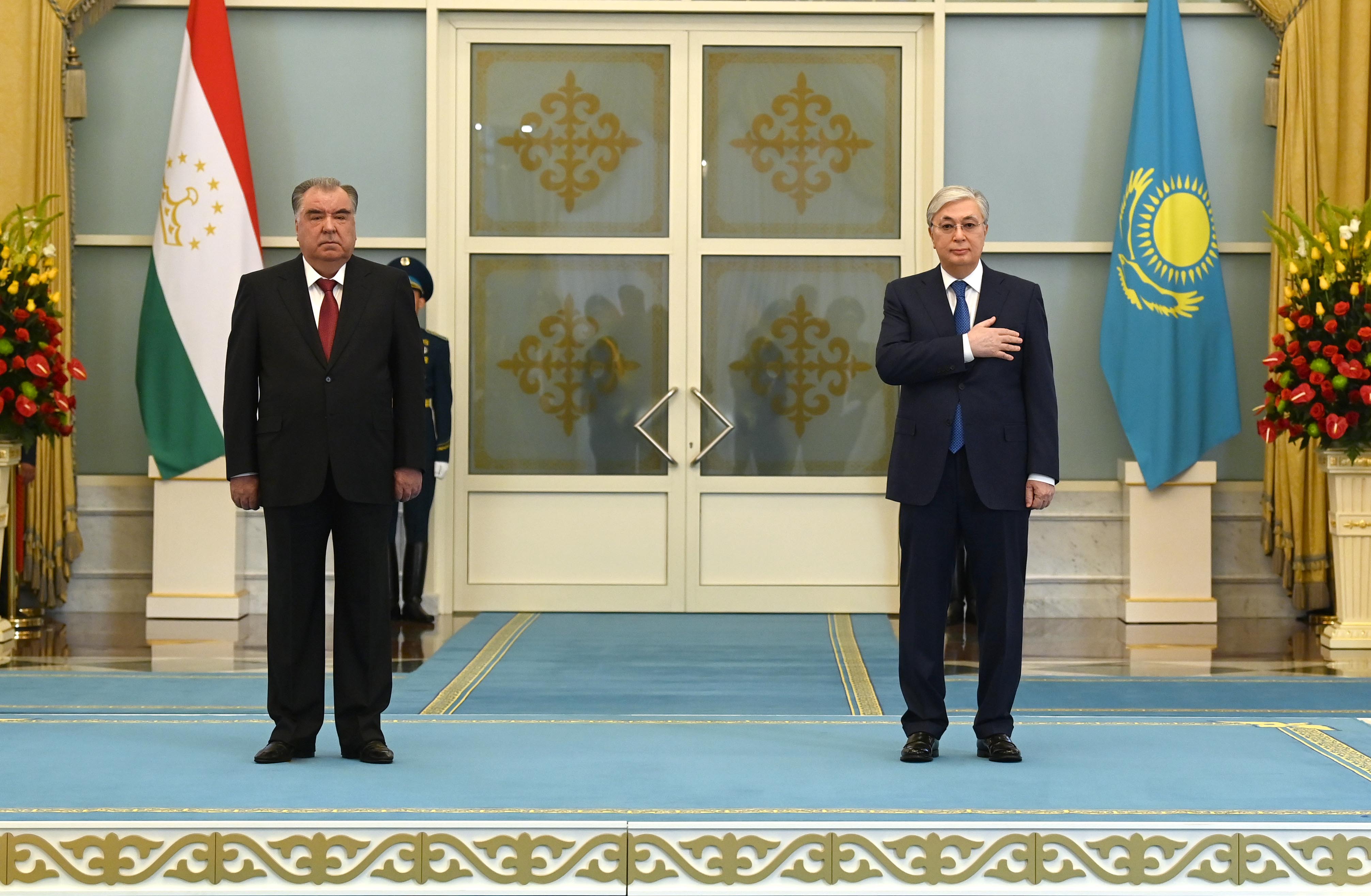 Переговорам предшествовала официальная церемония встречи в резиденции «Акорда». Касым-Жомарт Токаев и Эмомали Рахмон представили друг другу членов официальных делегаций. Начальник роты почетного караула отдал приветственный рапорт лидерам двух стран, прозвучали государственные гимны Казахстана и Таджикистана. Затем состоялась встреча глав государств в узком составе.
