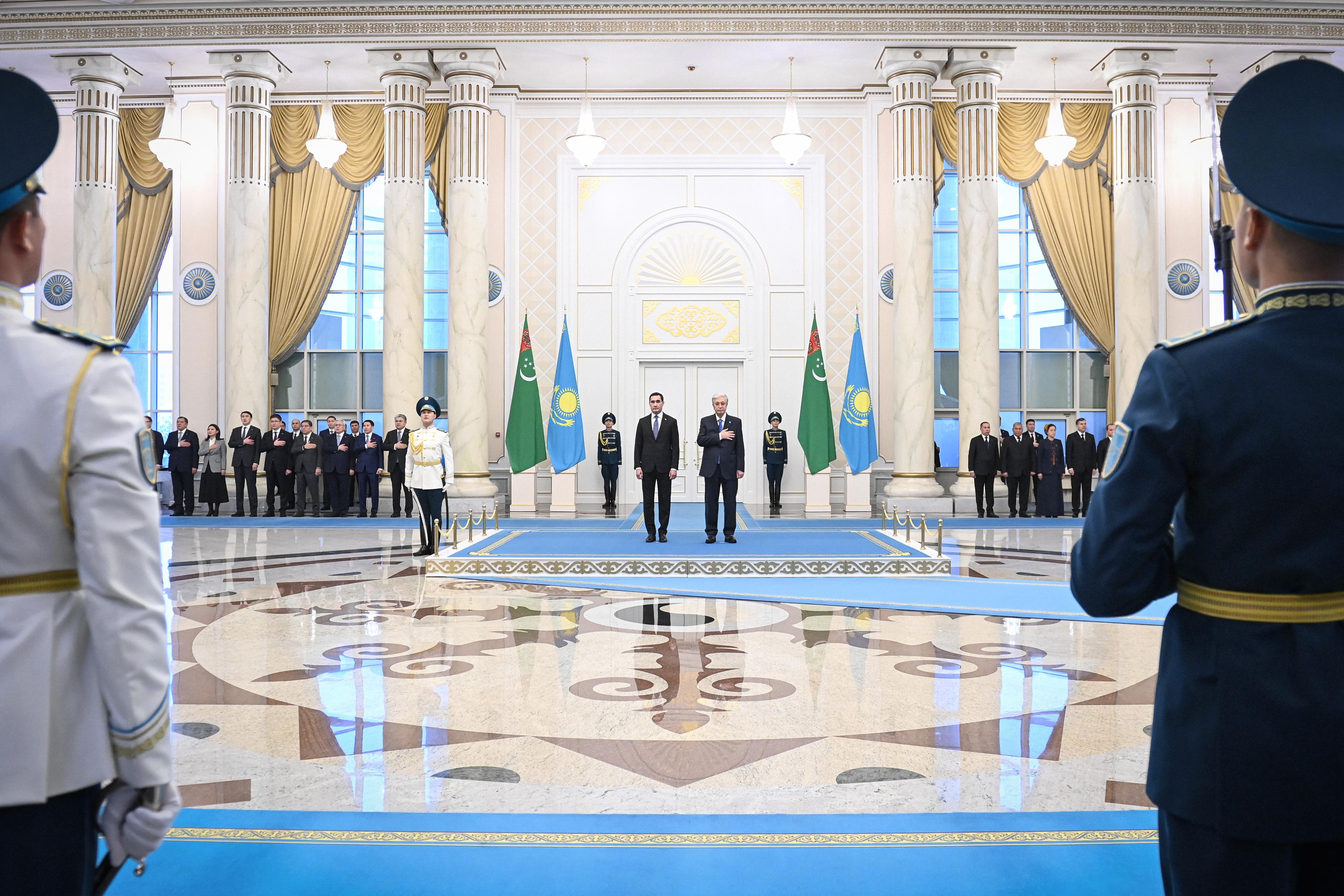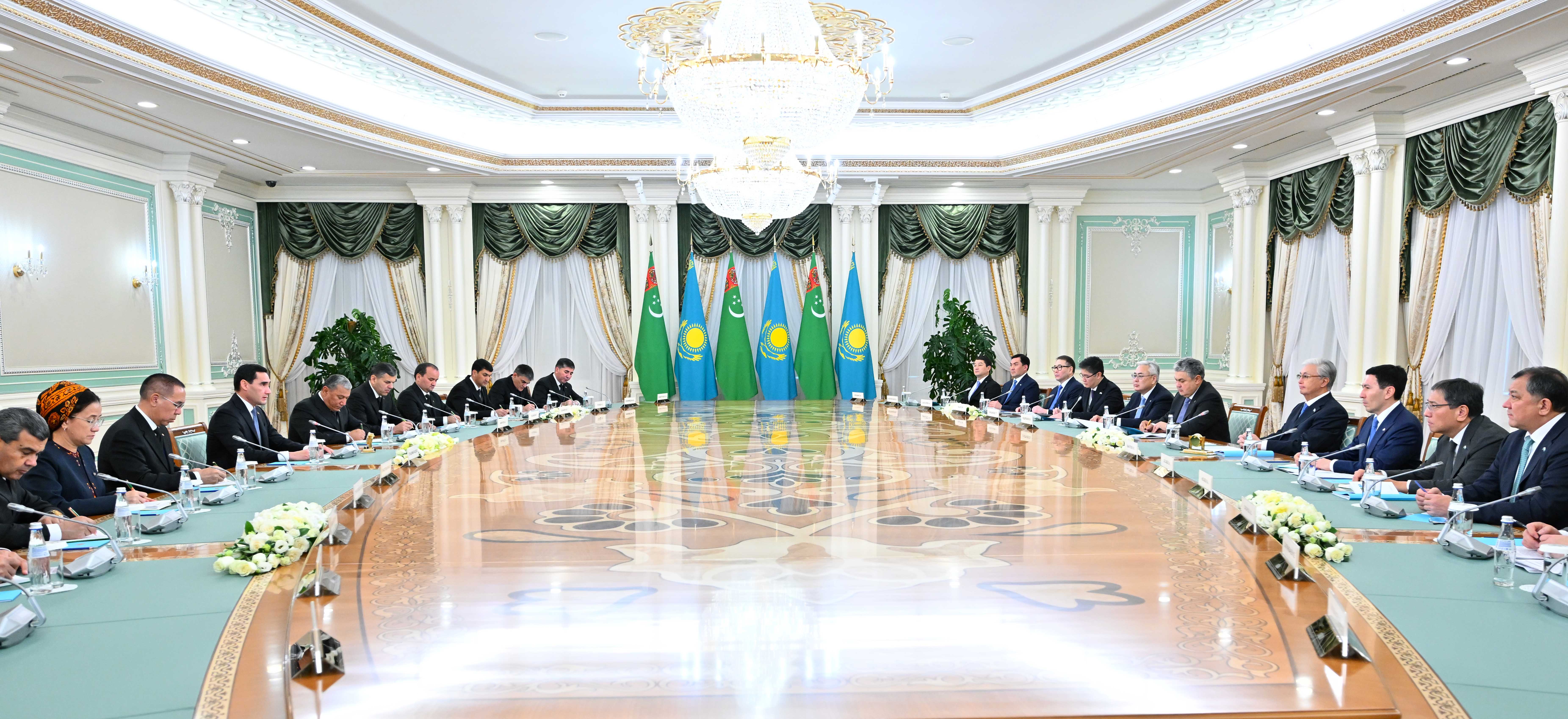 – Казахи и туркмены издавна являются родственными народами, связанными крепкими узами дружбы. Нас объединяют общая история, созвучные стремления и близкие культурно-духовные ценности. Мы придаем особое значение всестороннему развитию сотрудничества с Туркменистаном в духе добрососедства и взаимной поддержки. Совместными усилиями мы готовы уверенно двигаться к светлому будущему. Убежден, что стратегическое партнерство будет и дальше укрепляться во благо наших братских народов, – заявил Глава государства.